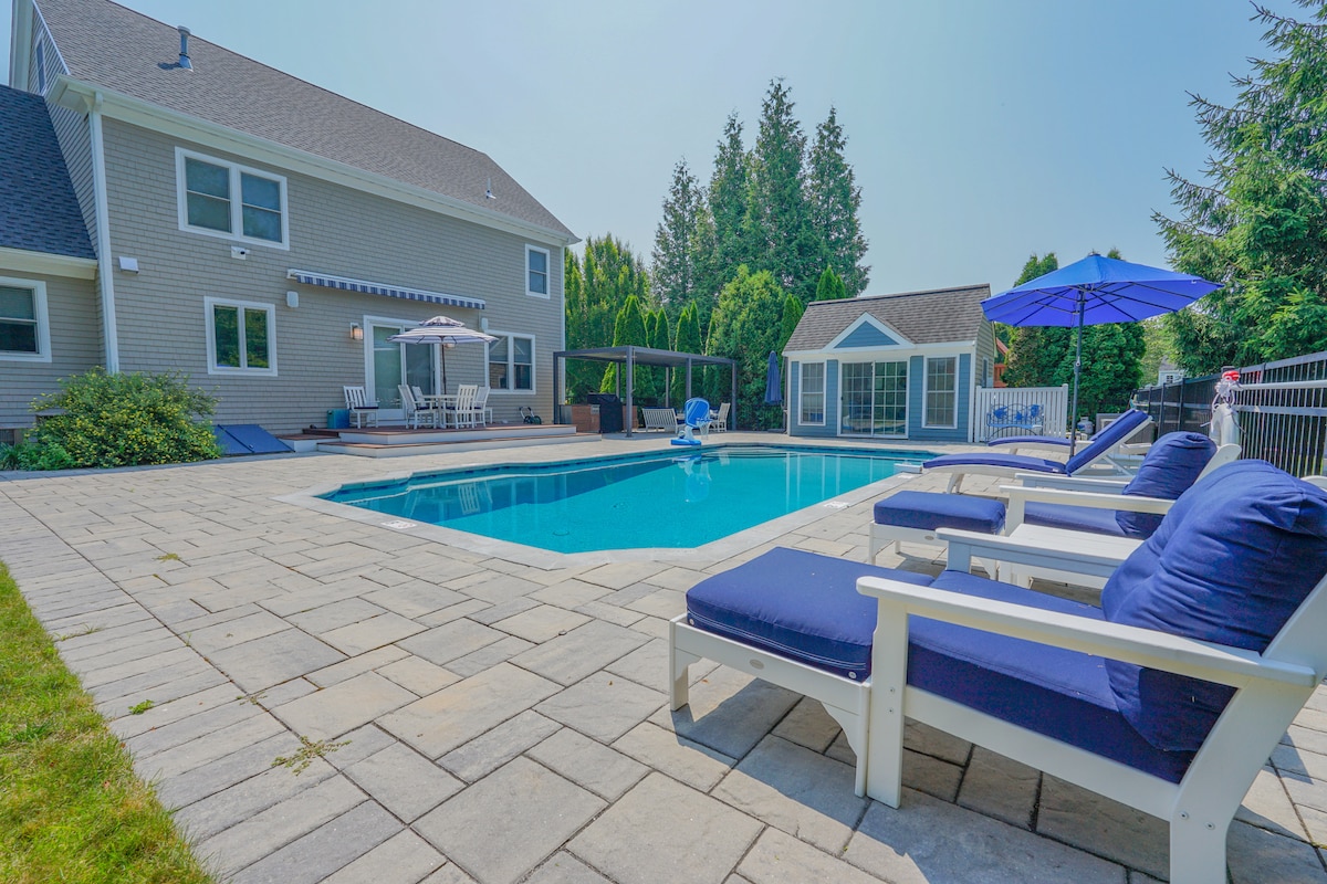 Here’s a tightened, natural version under 500 characters with the game room woven in smoothly! Escape to our upscale 5 bedroom home in Middletown, RI, just minutes from the beach and downtown Newport. Sleeps 10 comfortably and is perfect for weddings or group getaways. Enjoy the private pool, fire up the grill, challenge friends in the game room, or relax with a movie night. A prime location, plenty of space, and amenities designed for memorable stays year after year.