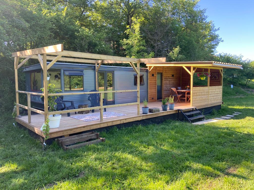 1 chalet vitré et 1 caravane, jacuzzi, salle de bain privative. Venez avec vos enfants, entre ami(e)s, ou à deux. Profitez de la vue sur les vignes et son coucher de soleil en toute intimité. Une bouilloire avec thé, cafetière senseo, frigo, micro onde et mini four. Différentes planches ainsi que vin, bulles, petits déjeuners sont en extras bubullesdanslesvignesbyso Chauffage à disposition des mi/fin octobre suivant les températures