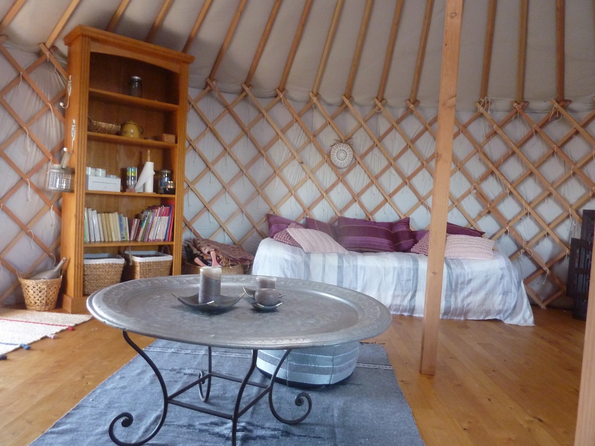 Venez découvrir ce campement magique au coeur des Hautes-Pyrénées (9 km de Lourdes). Une yourte de 29 m2 installée sur ce site insolite. Un lieu au plus proche de la nature avec une vue imprenable à 360 degrés face aux montagnes. Dépaysement assuré, si vous aimez la nature. Possibilité d'utiliser le bain nordique en supplément (50 e, incluant eau, bois , temps de préparation..). Me prévenir pour son utilisation avant votre arrivée Petit cabanon pour la cuisine et la douche. Toilette sèche.
