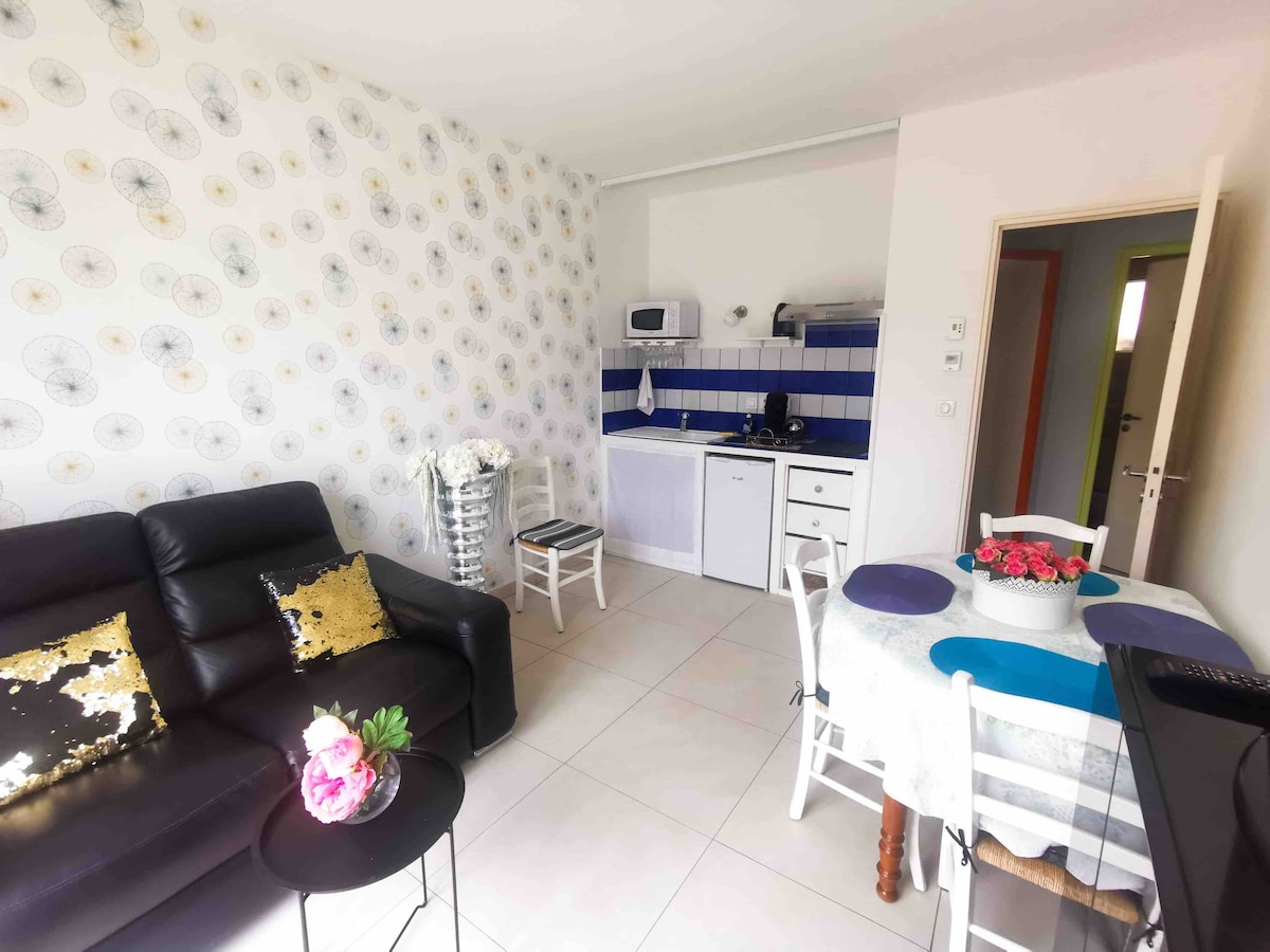 Situé à l étage d une maison individuelle au calme avec jardin et parking clôturés. Entrée indépendante, salle d eau avec wc (serviettes fournies), kitchenette équipée d une cafetière senseo, micro ondes, évier, frigo, plaque de cuisson induction, vaisselle, table, chaises TV (torchons à vaisselle fournis). La chambre comprend coin salon avec TV , lit 140cm, commode, portant. (DRAPS non fournis) possibilité location draps 10 euros.menage 20 euros. non adapté aux enfants de moins 8 ans.