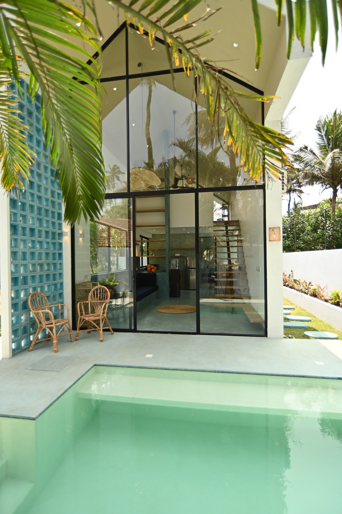 A private design hideaway for two in Ahangama, just 60m from the beach and its beautiful sunsets. Water is a one-bedroom villa set in its own walled tropical garden, with a private plunge pool and striking glass façade that fills the space with light. Upstairs you’ll find a king-size bedroom. And a small terrace to spot the ocean. The bathroom has a walk-in shower and freestanding bathtub. Designed for privacy, calm and comfort, just minutes from Ahangama’s surf spots, cafés and restaurants