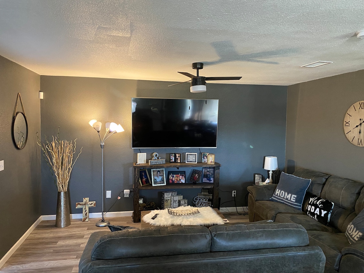 Centrally located near various restaurants & shopping, all short distance away. Spacious 1BR 1 bath with open floor plan for kitchen/dinning/living room. Our unit offers free Wi-Fi, keyless entry, and full kitchen. Fresh linens, towels, iron/ironing board, and washer/dryer can be found in spacious closet. Bedroom has Queen bed, desk, and each room has Amazon Fire smart TV w/ remote to access multiple streaming apps A small patio is located off living area, with seating and space for pets.