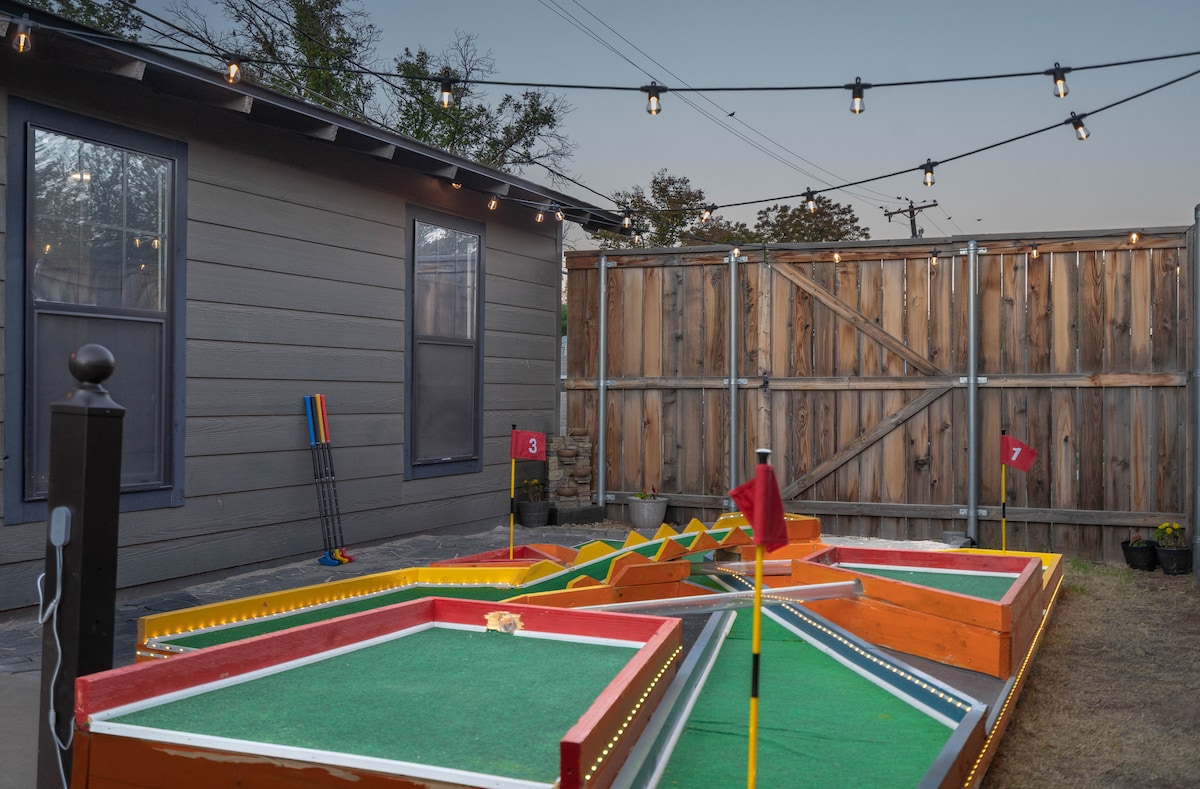 Escape to your private retreat with Mini Golf & Fire Pit. Newly remodeled; modern design offering total privacy and luxury comfort. Perfect for business travelers, it offers Fast Wi-Fi and serene setting with thoughtful touches to elevate every moment of your stay. • Blackout curtains for cozy nights • Private Entrance and 8ft Fenced Yard • Smokeless Fire Pit & BBQ • Fully equipped kitchen & Nespresso Indoor putting for rainy days, no tee time required!