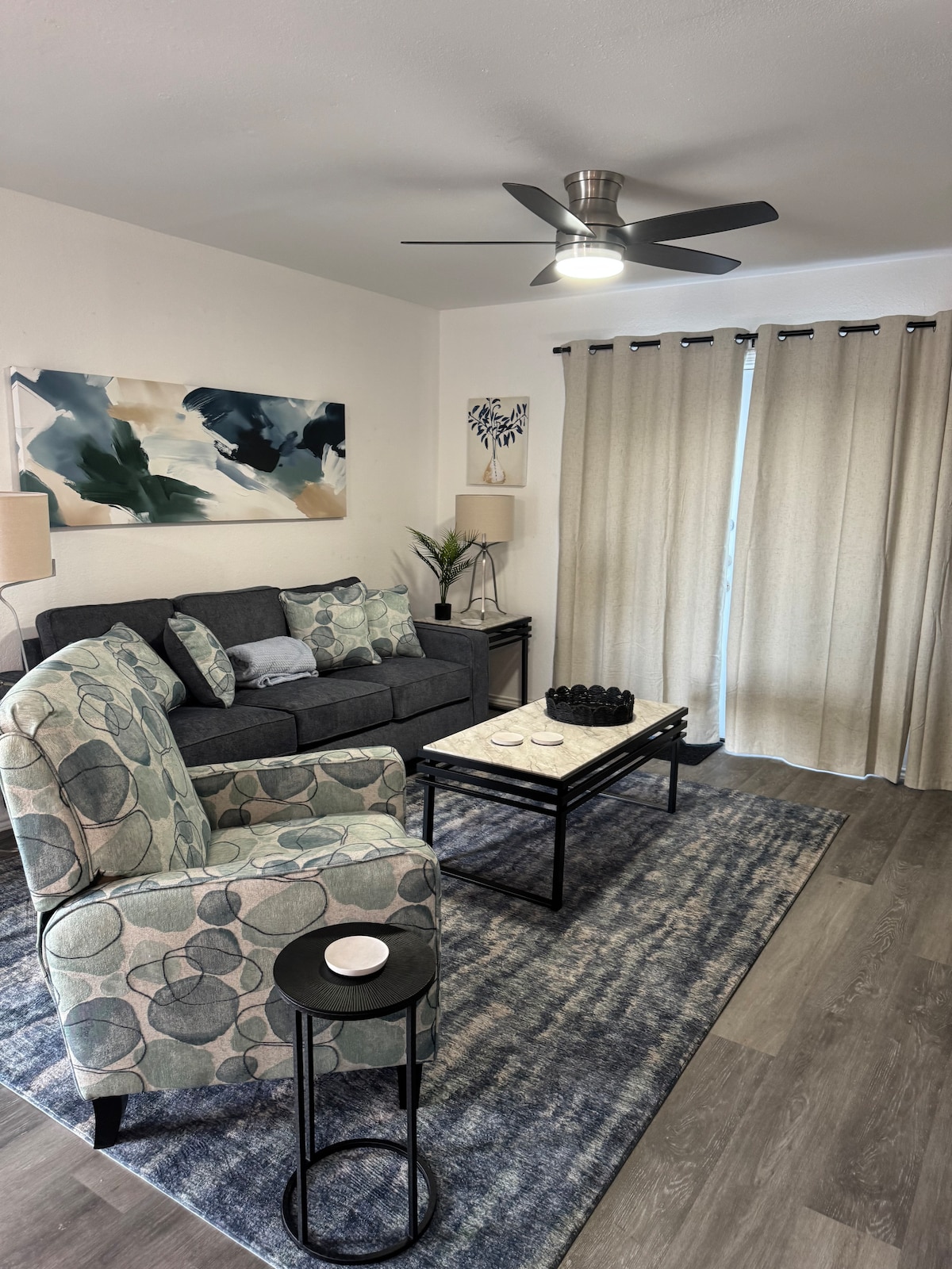 Welcome to your luxury getaway in Midland! This 1BR offers comfort, style, and resort perks. Relax in a cozy living room with smart TV, sectional, and workspace. The kitchen is fully equipped with modern appliances, coffee maker, and waffle maker. Enjoy a private balcony with courtyard views or use the pool, hot tub, gym, firepit, putting green, and grills. Perfect for business stays, couples, or small groups—with free parking. Stay stress-free and comfortable for one night or a month.
