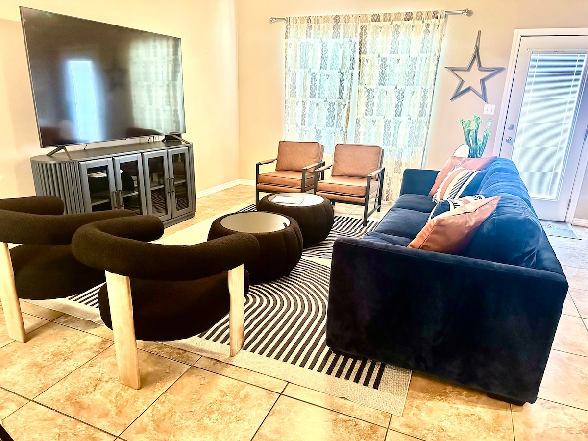 Welcome to Midland. We are within walking distance to Gerardo's Casita, Rosa's Café and Taco DeVino. So if Mexican Food is your thing we got you covered. This unit is nested on a quiet street within minutes to ClayDesta Business Center and Downtown. The houses is bright and open with two bedroom and an en suite bathroom in the master that has separate entrance for the guest bedroom. The bedrooms have 55" smart TV's as does the living room. The kitchen is fully stocked if you like to cook.