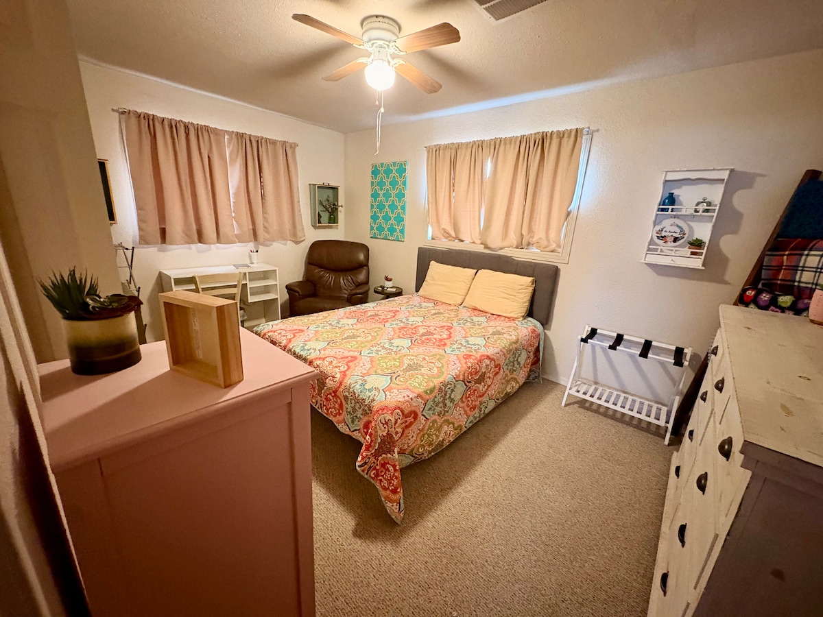 Keep it simple at this peaceful and centrally-located place. Charming and quiet private backyard casita offers full size appliances and washer/dryer in the unit. Self care is spa-like in the extra large, clean bathroom. Sleep comes easy in the cozy king size bed. If you need extra bed space, the couch makes an additional full size bed. We can’t wait for you to experience this sweet little home away from home.