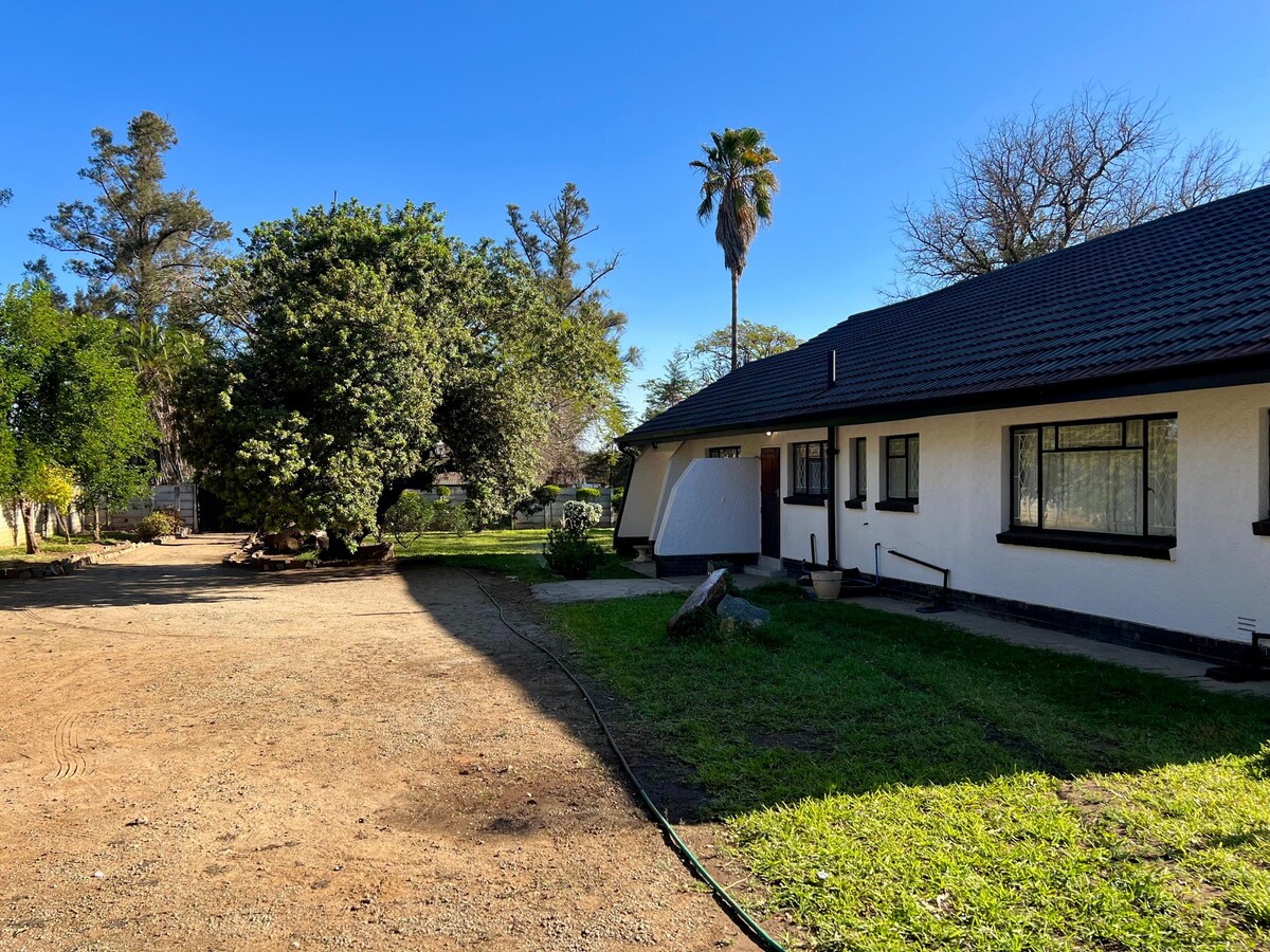 HOSTS LIVE IN THE MAIN HOUSE ON THE SAME PROPERTY! (Solar power geyser and electricity , borehole water, Wi-Fi, guard alert & alarm system, CCTV) Pleasant & serene place to refresh and relax whether on holiday or for business. NO CASH PAYMENTS! Online payment only! Thank you.