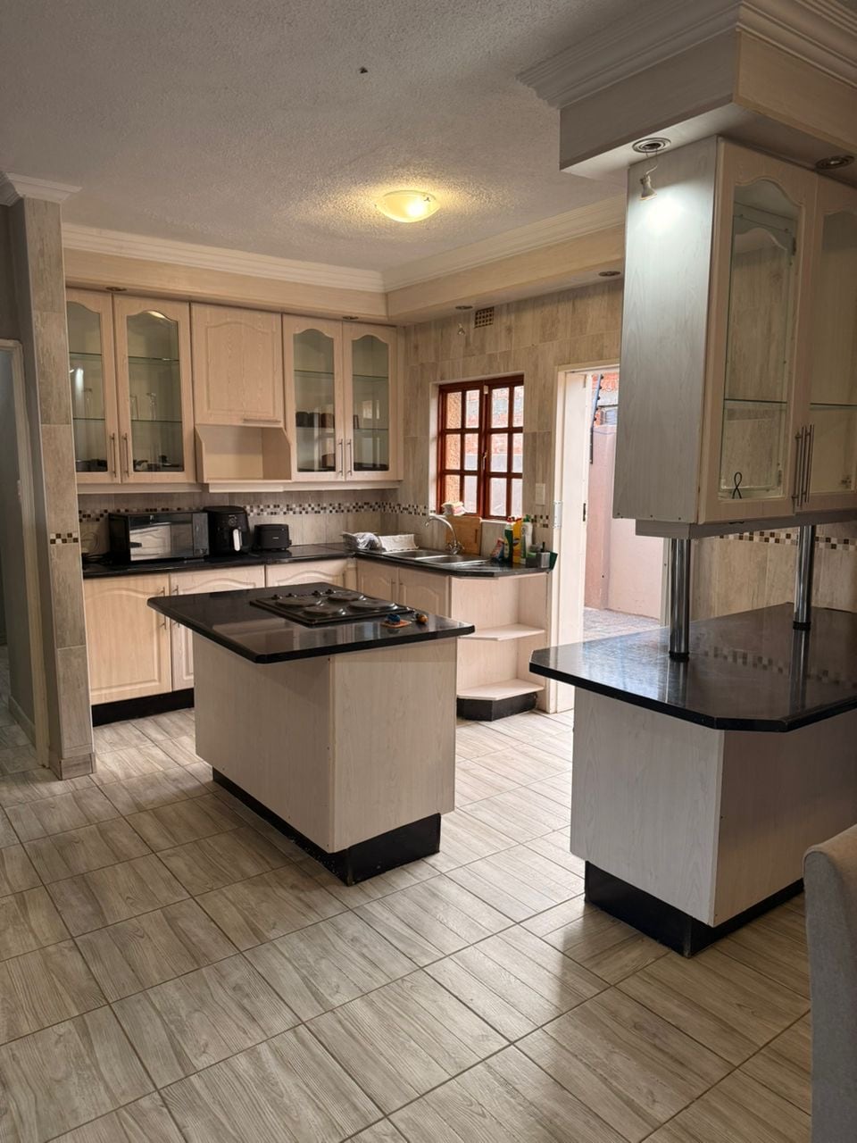 Located in a tranquil neighborhood, this spacious single storey home boasts 2 living and dining areas, large kitchen with plenty of storage and working space, 4 bedrooms and 2.5 bathrooms designed to ensure everyone's comfort. Property has borehole water, solar geyser, backup solar power and limited wi-fi. Enjoy the large garden, a choice of outdoor seating areas, and a large claybrick braai. It is less than 10 mins drive to the CBD with easy access to all major highways.