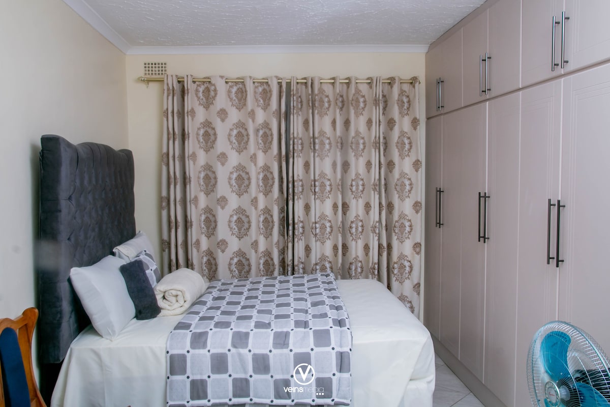Bulawayo's best spot is super close to town and has a lush garden and secure living area. You’ll love my place because of the outdoors space. Highly recommended for couples, solo adventurers, business travelers, and families (with kids). Equippped with solar lights and geyser, in the event of power cuts as well as a gas stove.