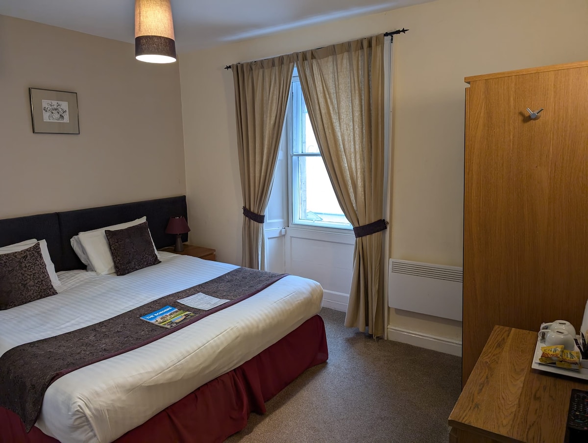 Lovely double bedroom with en-suite (Room Only as we do not serve Breakfast but Tea & Coffee included) located in a Country Pub within a conservation village 10 miles from Edinburgh. The Gordon Arms is a very friendly local pub serving local ales and a large selection of drinks. Home made pizzas available daily. The restaurant, serving excellent bistro food, is open Wed-Fri, 17:00-21:00, Sat 1:00-21:00 and Sun, 12:00-20:00. Well behaved dogs are welcome in Bar area & Hotel Rooms.