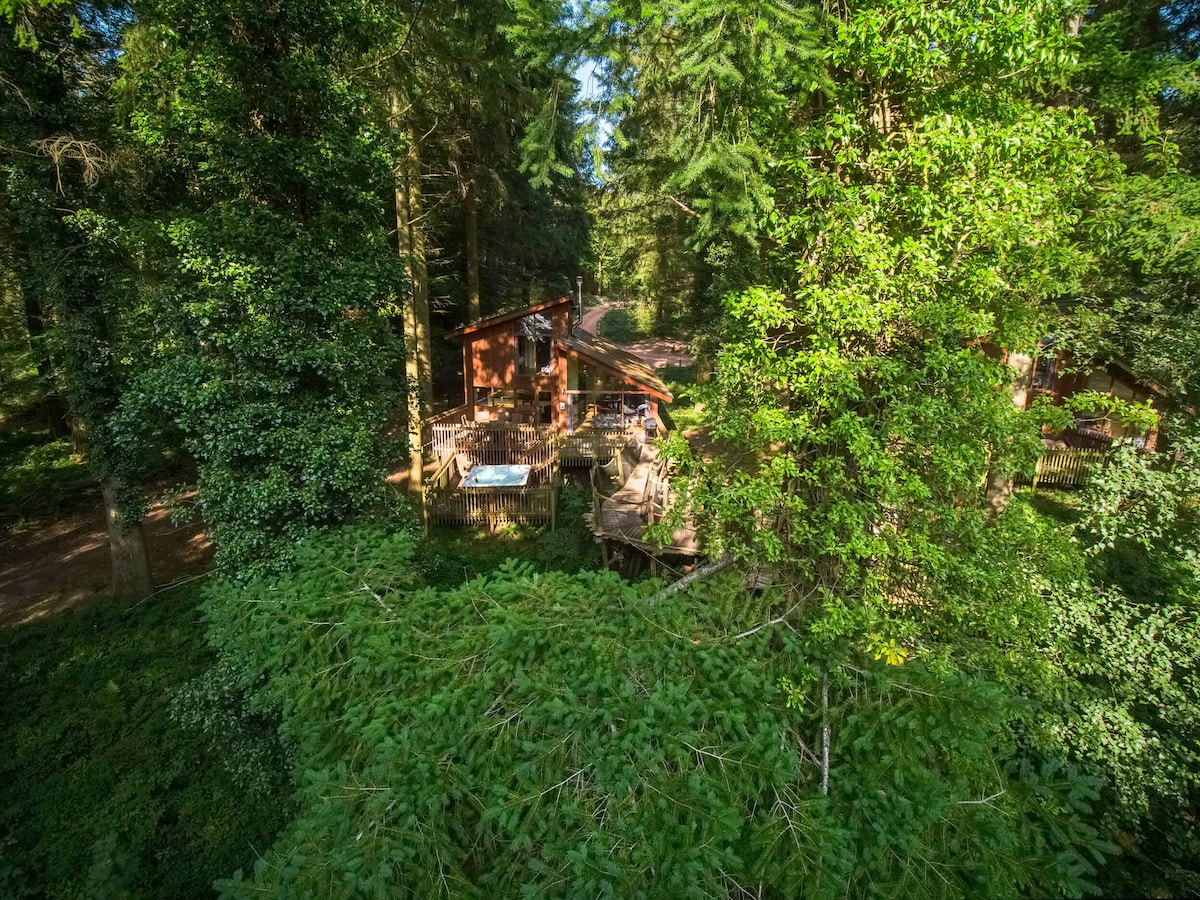Escape to the Glentress Forest Golden Oak Treehouse, a stunning retreat for up to 10 guests, featuring four spacious bedrooms, a unique treehouse pod, and a private hot tub. Surrounded by 3,800 acres of lush forest.
