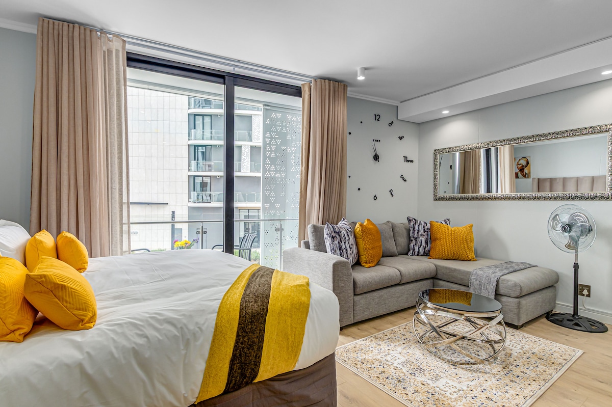 Step into Kurhula Suite, a stylish 1-bedroom apartment fronting Sanridge Square, perfectly located for business travelers and city explorers. Enjoy fast Wi-Fi, a bright workspace, and hotel-quality comfort, all just steps from shops, restaurants, and OR Tambo Airport. After work, relax on the balcony, stream your favorite shows on the Smart TV, or cook in a fully equipped kitchen. Whether you’re here to work, rest, or reset, Kurhula Suite offers a serene, convenient base in Midrand.