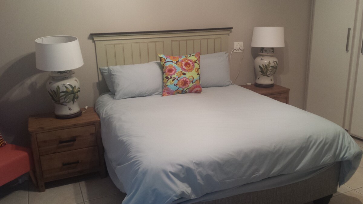 A bit of suburban peace while a stone's throw from every convenience. Centrally located between Johannesburg & Tshwane. Less than 5 min drive to Mall of Africa, Waterfall Hospital, Kyalami Grand Prix Circuit, World of Golf, Stadio campus & N1 Highway. 10 min drive to Gallagher conference centre, Gautrain station & Grand Central airport. Enjoy free WIFI & ample surface area for paperwork or projects. Peaceful walks in boomed off area in the cool of the day. Garden view from bedroom window.