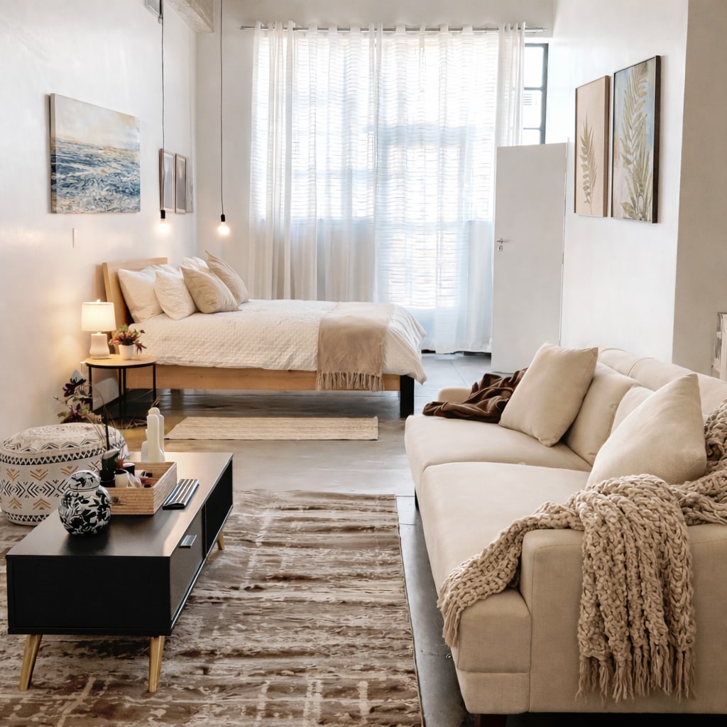 Safe, Stylish & Spacious Near Sandton. Unwind in this beautifully styled, extra-large studio apartment set in the secure Thornhill Estate conveniently close to Sandton and OR Tambo Airport. With a generous open-plan layout with a full kitchen, luxury finishes a spa-like bathroom with dual basins, a walk-in shower and an oversized bathtub. Dedicated workspace and fast Wi-Fi. Access to estate amenities including a shared pool. Perfect for work trips, solo travellers or couples.