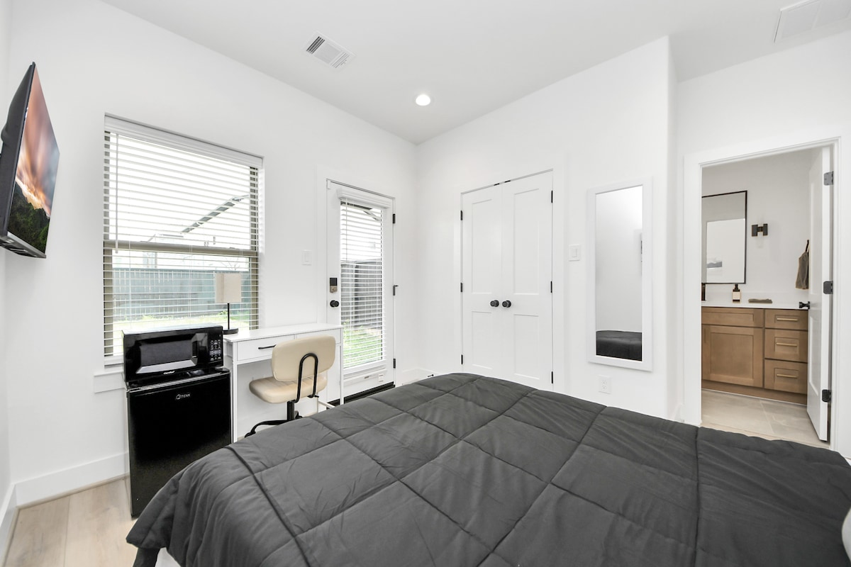 Howdy!! You will have your own private entrance to a private bedroom and full bath + closet in our modern townhome in a gated community! This room is connected and shares a wall with the rest of our home. There is no Kitchen. We are within walking distance from Downtown, Minute Maid Park, BBVA Stadium, George Brown Convention Center, Houston's top Bars, coffee shops, and restaurants. We are extremely close to all the essential highways which means cheap Ubers to most places!