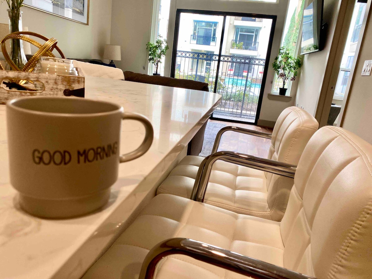 Welcome to your art-inspired penthouse suite in the heart of Houston. This luxury space features chic decor, curated art, stunning skyline views, and a peaceful vibe perfect for relaxing or working. Enjoy smart TVs, a cozy bedroom, spa-style bathroom, and a fully equipped kitchen. Located in a high-end building just minutes from the Med Center, NRG Stadium, and Downtown. Ideal for couples, families, solo travelers, medical professionals or business guests.
