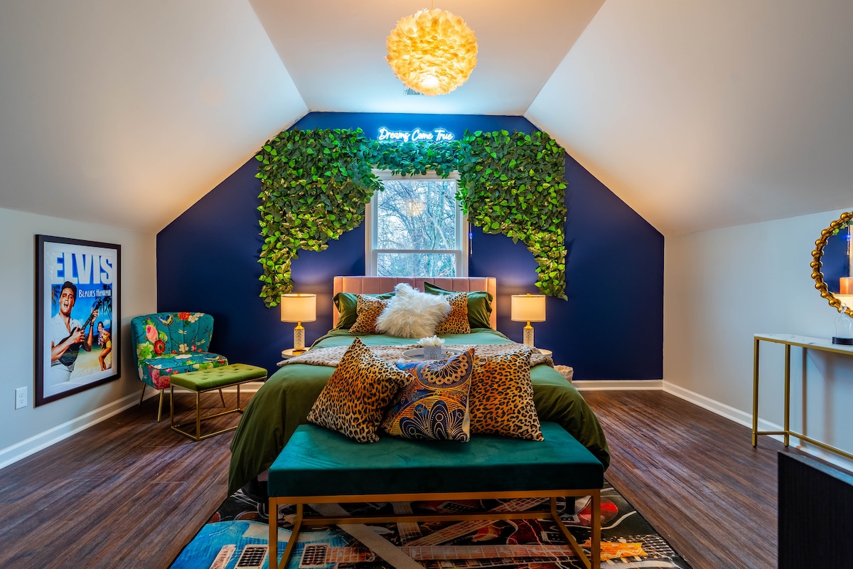 In a quiet neighborhood, just 10 minutes from all that Memphis has to offer, this home will give you peace and comfort after exploring the town! This home has been artistically crafted with a fun, vibrant theme, loads of games, and gorgeous design (indoors & backyard) to give you and your family/friends everything you'll need! 5 min - Stax Museum 7 min - Memphis Zoo 10 min - Beale Street, Graceland, National Civil Rights Museum Experience Memphis With Us & Learn More Below!