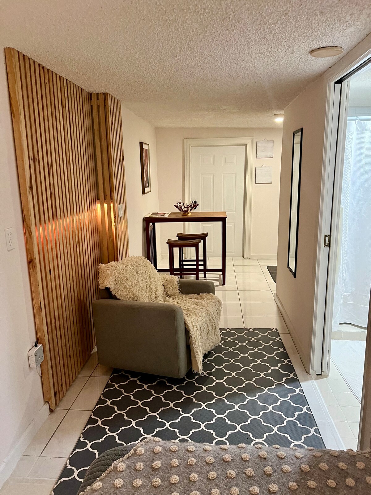 棒球场旁的闪亮单间公寓。有独立入口