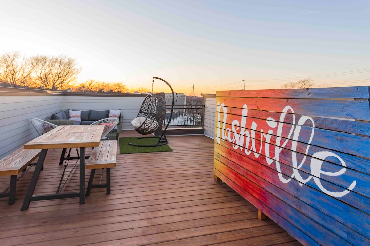 Welcome to our latest addition of amazing places to call home while visiting Nashville. The 'Nashville City View' is simply stunning inside and out. With an incredible rooftop terrace overlooking the Nashville Skyline, you can see where this home gets its name from! This property is the perfect gathering place for your group and just minutes from the downtown honkey tonks and other Music City attractions.