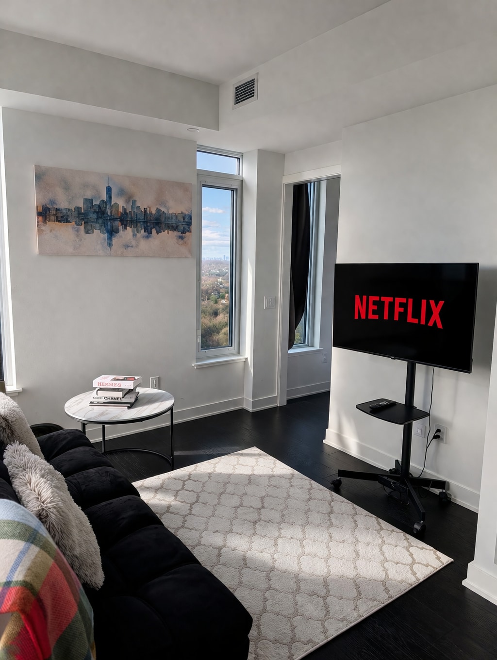 Welcome to our modern & luxurious corner penthouse! Stylishly designed with lush greenery and upscale touches, this bright space offers comfort, elegance, and a relaxed tropical vibe. Take in stunning panoramic city views and unwind with premium amenities including an outdoor pool, hot tub, and steam room sauna. Just a 15-min drive to downtown. Public transit at the doorstep. 10-min drive to Rogers Stadium. Perfect for discerning guests seeking an elevated stay in Toronto’s vibrant urban core