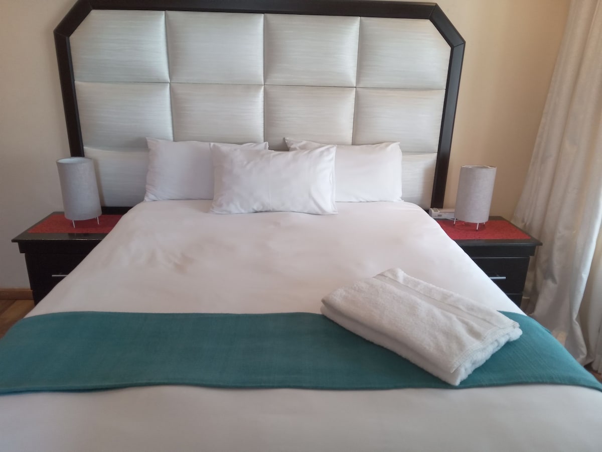 Kick back and relax in this calm, stylish space. Offering a comfortable room, stunning patio views & a pool. Relax and enjoy free Wi-Fi, Netflix and Air-conditioning - you will feel right at home. Our guesthouse has solar power and continuous water due to our borehole so you won't feel any inconvenience from loadshedding.