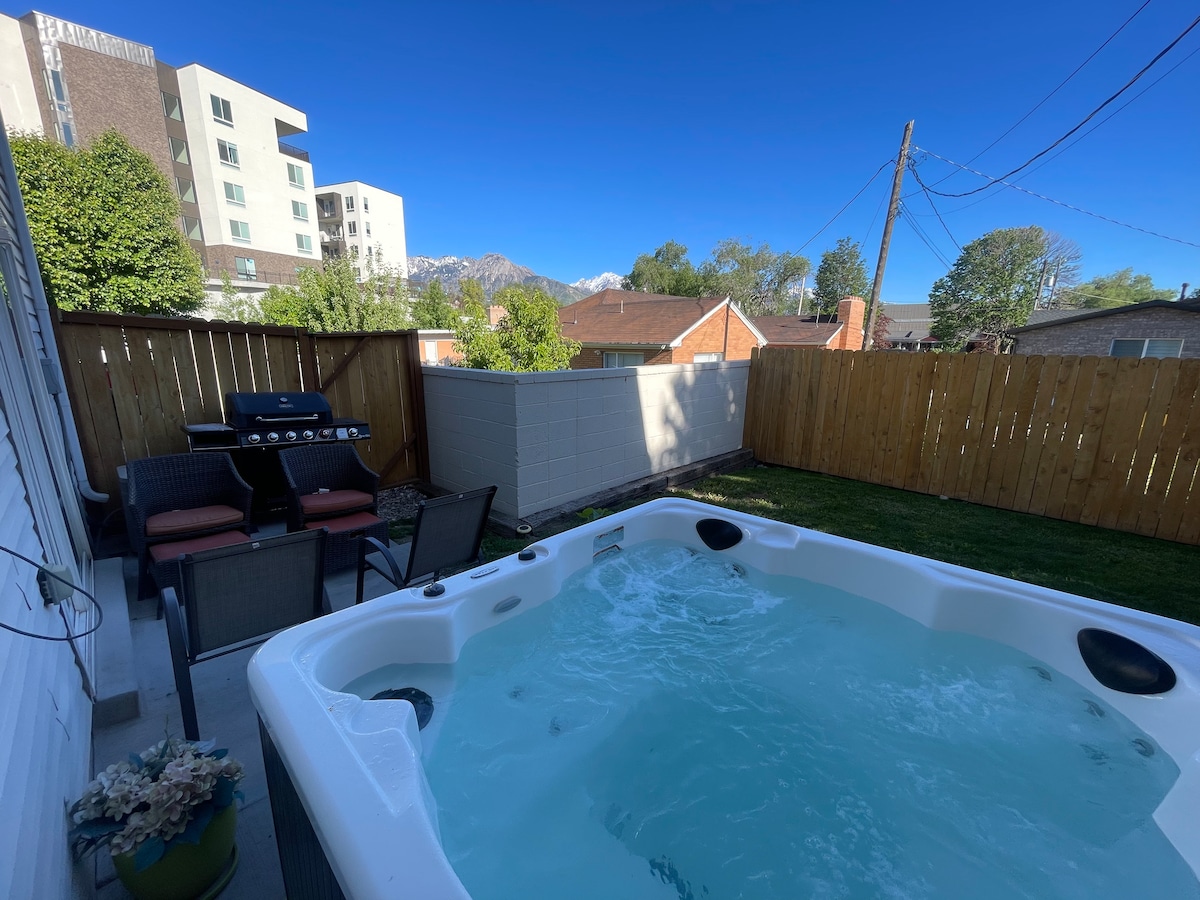 A newly remodeled townhome with a private hot tub (serviced daily) in a fully fenced yard for your use only! Located in a quiet residential neighborhood by Brickyard Plaza in the heart of Millcreek. Near restaurants, bars, grocery & shopping stores, Millcreek City Center, and Sugarhouse Park. It is a 15-minute drive to Downtown SLC and a 30-minute drive to 4 ski resorts! Modern amenities like fast WiFi, Prime Video, and apps to log into your account such as Hulu and Netflix.