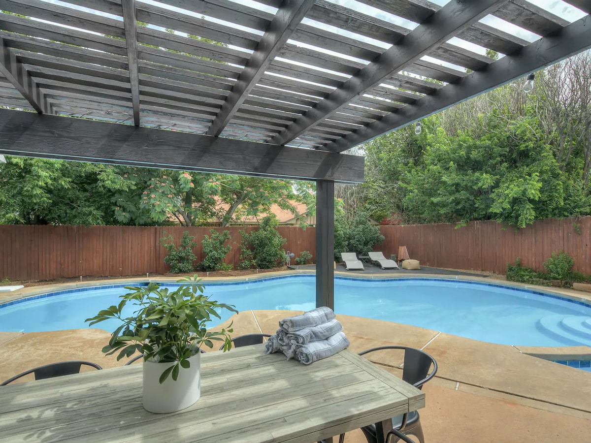 Explore Oklahoma City and stay in this newly remodeled, tastefully decorated, charming 1900 sqft house located in a quiet and cozy neighborhood. The pool is available most of the year and the hot tub is open year-round!!! **The pool is uncovered all year, so ask about the heating rates for your stay** Vacation or staycation?! This house has Everything you need to enjoy all that the city has to offer!! ✔Clean ✔Comfortable ✔Centrally Located ✔Family Friendly License #: HS-00290-L