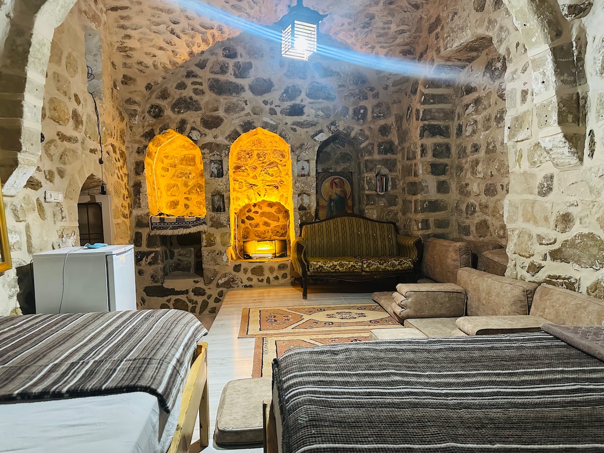 Mardin'in tarihi atmosferini derinden hissedeceğiniz bu konforlu oda, İpekyolu Kadın Kooperatifi'nin misafirperverliği ile sizi büyülü bir ortamla buluşturuyor.