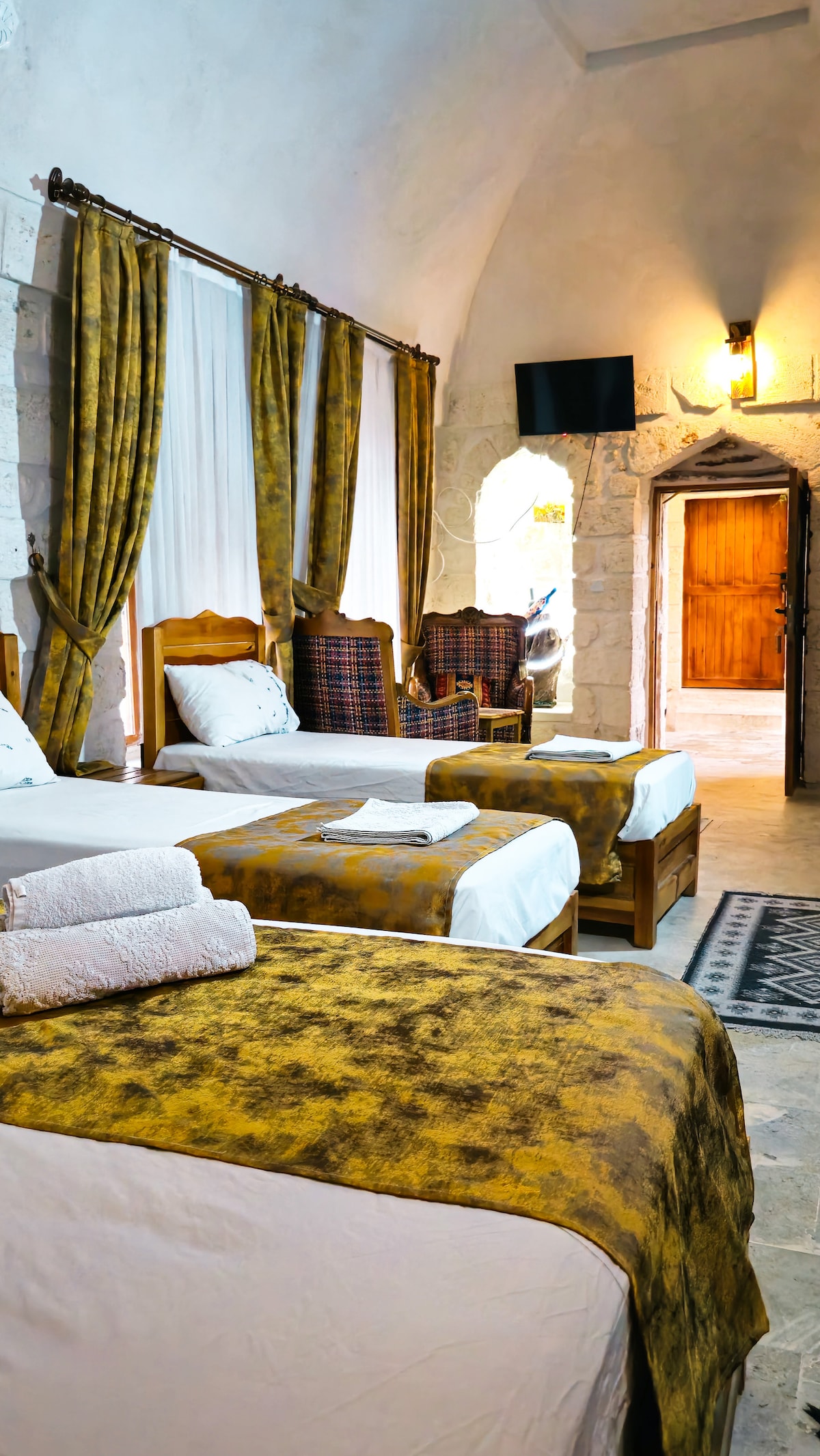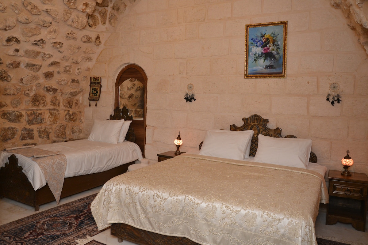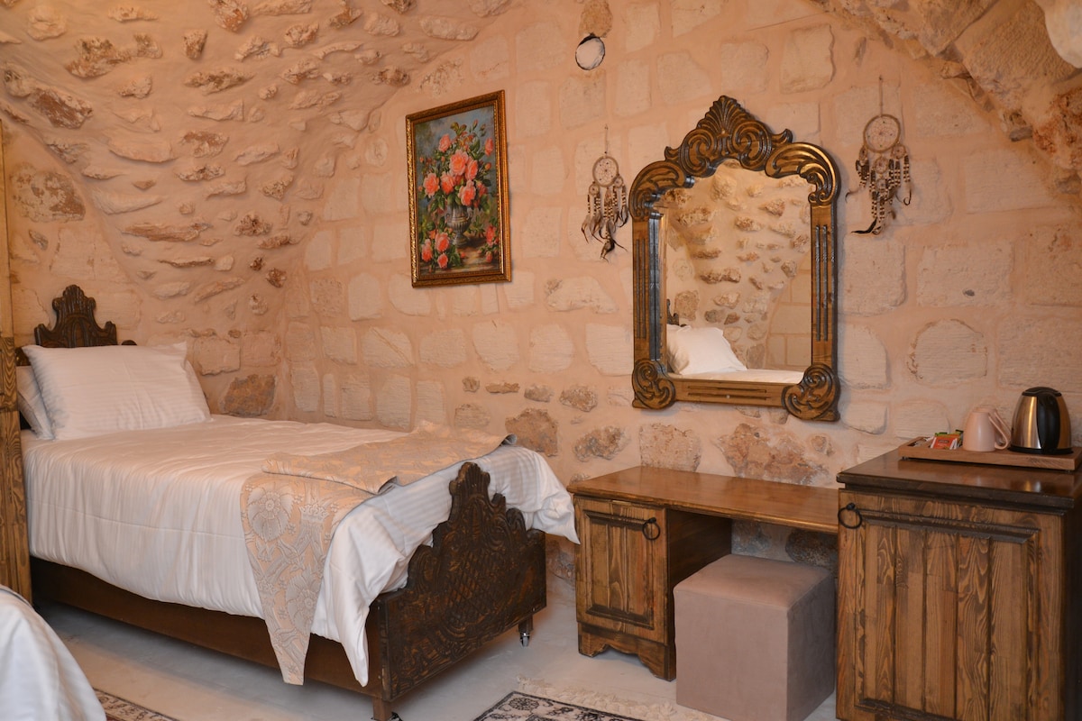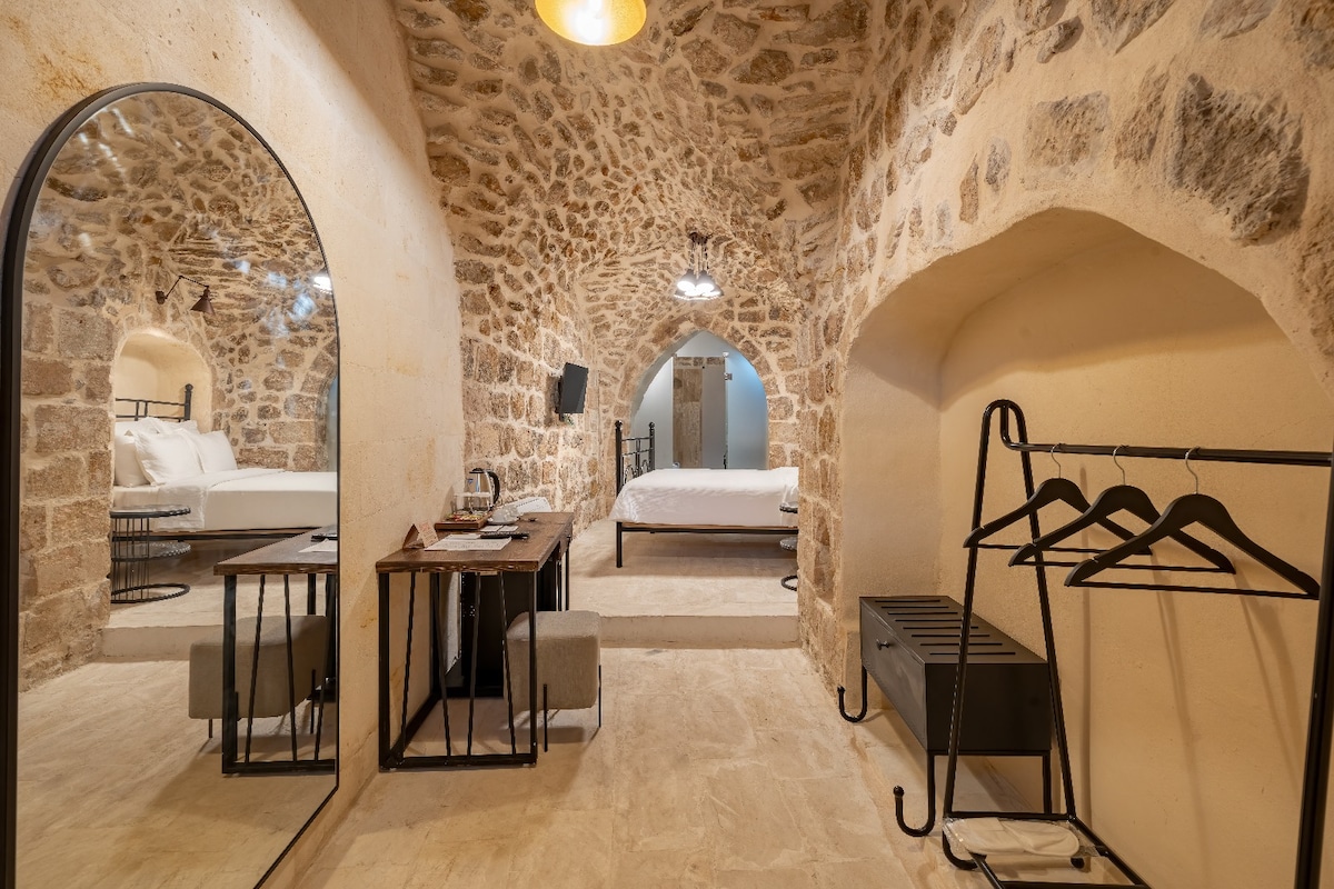 Mardin’in büyüleyici tarihi dokusunu modern konforla buluşturan odamızda, taş duvarların mistik atmosferinde unutulmaz bir konaklama deneyimi sizi bekliyor. Tesisimizde konaklayan misafirlerimize, konforlu ve keyifli bir konaklama deneyimi sunmanın yanı sıra, her sabah özenle hazırlanmış kahvaltı servisini de oda fiyatına dahil olarak sunmaktayız. Güne taptaze ürünlerle dolu, doyurucu bir kahvaltıyla başlamanız için sizleri tesisimize bekliyoruz.