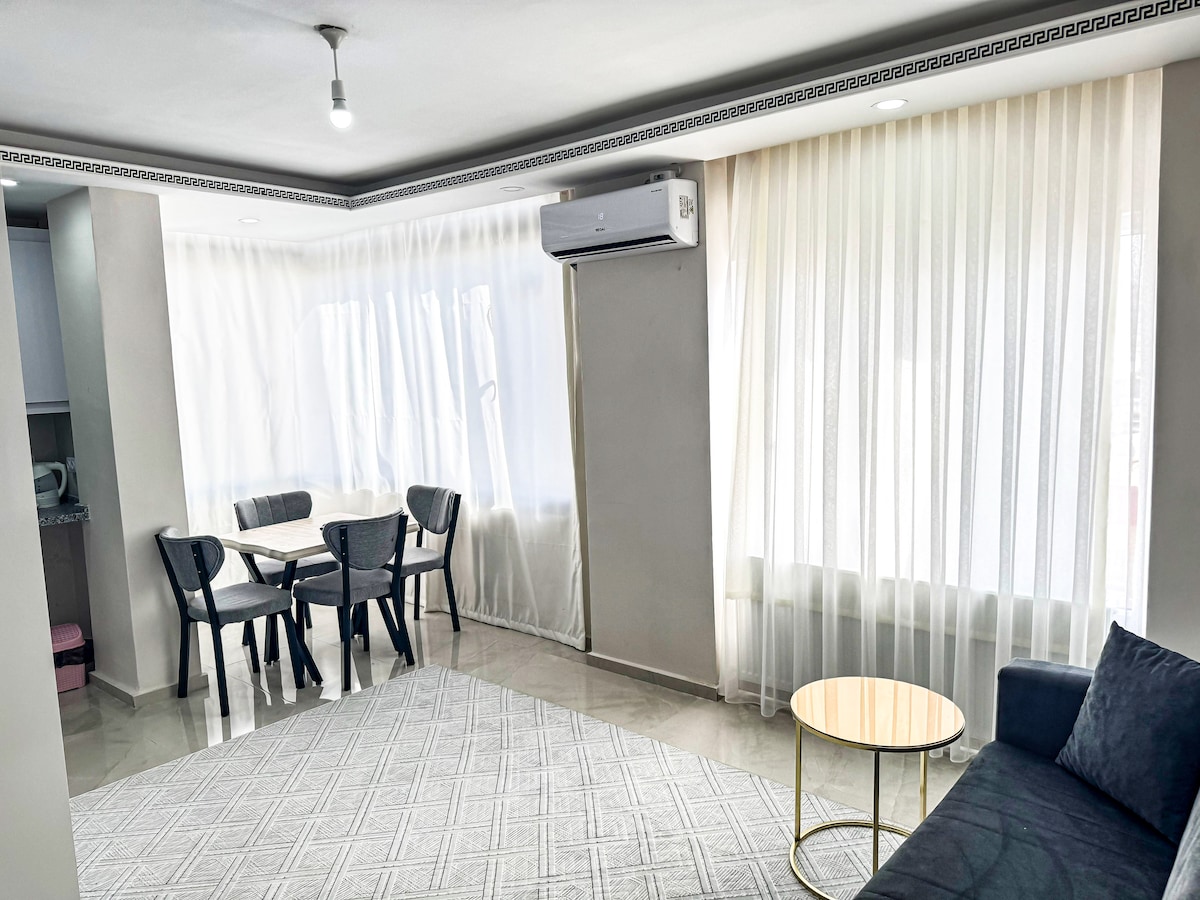 Midyat merkezdeki 1+1 dairemiz; çift kişilik yatak, açılır kanepe, mutfak, banyo, klima, çamaşır makinesi, Wi-Fi ve ücretsiz sokak parkıyla konforlu bir konaklama sunar. Güvenlik kameraları ve 24 saat resepsiyon vardır. Aynı binada, aynı özelliklere sahip toplam 12 dairemiz bulunmaktadır. Hepsi aynı konfor ve donanıma sahiptir.