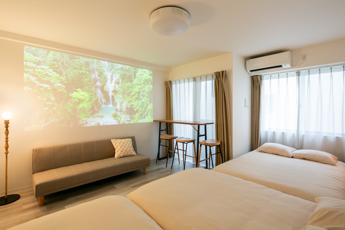 连住30%~65%折扣 距离京都站仅2站!可以烹饪和洗衣!带投影仪的双人床房!