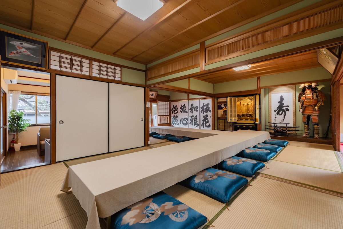 Exclusive Private Rental – Traditional Japanese House (16+ Guests) This traditional Japanese house with a garden is midway between Nagoya and Osaka, with easy access to major sightseeing spots: JR Osaka Station: 2.5 hrs JR Nara Station: 1.5 hrs JR Kyoto Station: 2 hrs JR Nagoya Station: 1 hr 45 min The property is across from the JR station. Free parking on-site: 15 min from Shin-Meishin Expressway Kohnan IC, 4 min from Meihan National Highway Shimo-Tsuge IC.