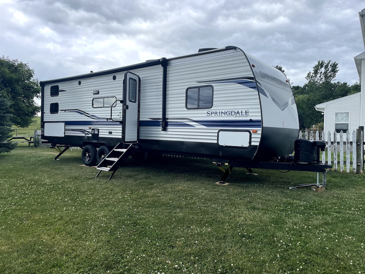 Reconnect with nature in this 2021 Camper! A beautiful new camper that fits six people comfortably. It is stocked with everything and anything you might need blankets, sheets, coffee maker, dishes, TV, and even an outdoor eating space and lounging area. This camper is located in a rural area, surrounded by beautiful country views. This place is 30 minutes away from the PSU stadium. After the hustle and bustle come enjoy a relaxing night in the country. The camper is fully loaded.