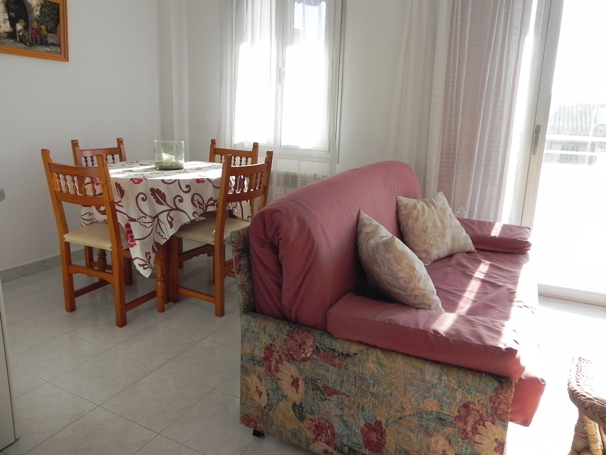 Nuestro apartamento Bellavista está ubicado en primerísima linea de la playa con unas fabulosas vistas al mar y a la playa, que hacen único a este apartamento. El apartamento Bellavista está totalmente reformado con suelos de parquet, completamente amueblado y equipado para su disfrute y el de su familia, nuestro apartamento está situado en el segundo piso del edificio 'Bellavista', no disponemos de ascensor. *** Capacidad máxima 4 personas (niños y bebes incluidos)