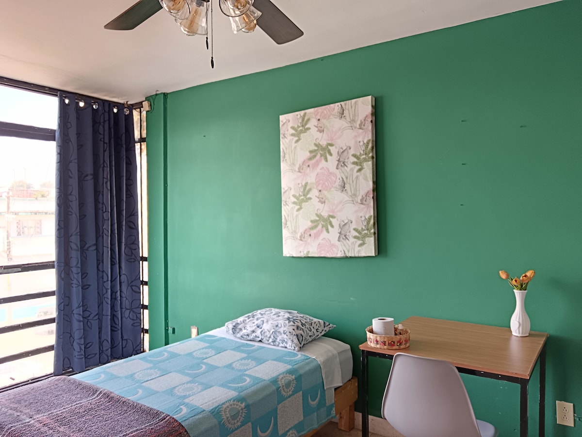 Disfruta de la sencillez de este alojamiento tranquilo y céntrico. Departamento nuevo, pequeño y completo, pensado para tu comodidad; con entrada independiente, baño propio y cocina completa. - A 5 minutos del centro histórico, museos y bancos. - A pocas calles de la nueva zona de restaurantes . - Muy cerca de famoso centro hospitalario. - A 5 minutos en auto de 3 plazas comerciales importantes. - Para toda la información que requieras de la ciudad y sus alrededores estaré feliz de apoyarte.