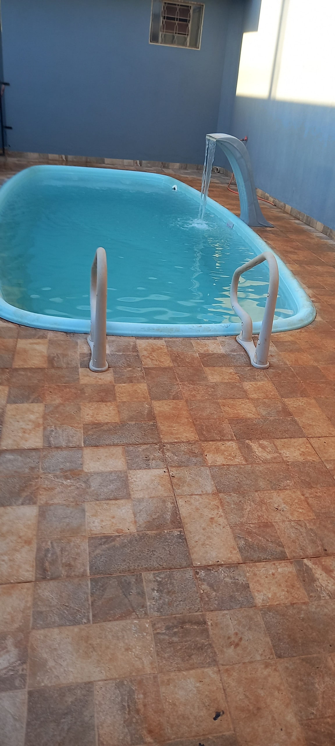 Casa com área de lazer. A casa possui 1 quarto com duas camas de casal e um colchão, guarda roupa e ar condicionado. Possui um amplo banheiro interno e 2 banheiros externos tipo "masculino e feminino". A sala conta com aparelho de tv e sofá retrátil e reclinável. A casa fornece ainda internet Wi-Fi. Área externa com mesa e cadeiras, churrasqueira e piscina limpa exclusiva para recebê-los.