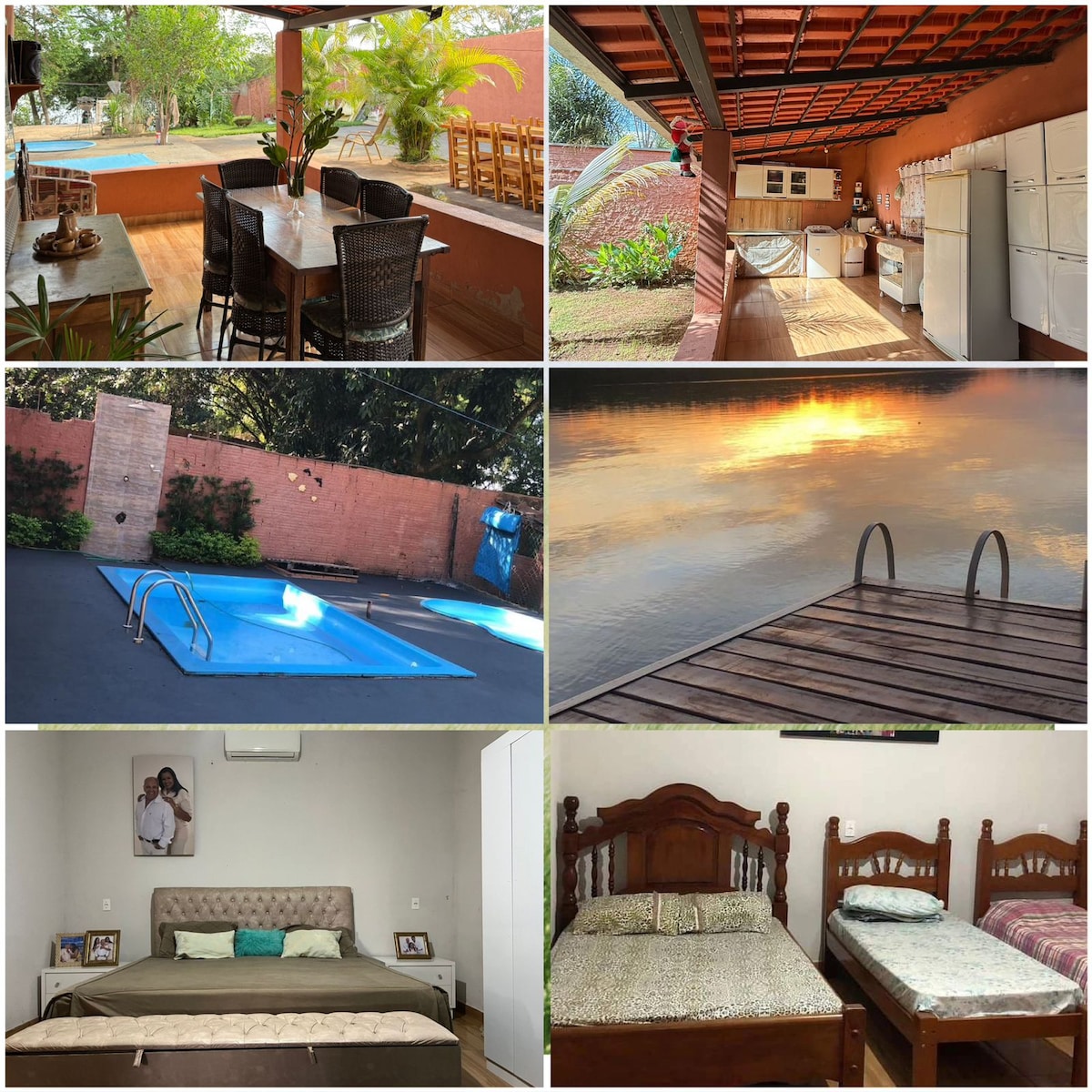 Descubra o Seu Refúgio Perfeito!Esta encantadora acomodação oferece tudo o que você precisa. Com 4 suítes aconchegantes (ar condic) você e sua família poderão desfrutar de conforto e privacidade. O espaço externo é um verdadeiro paraíso! Possui piscina e área de churrasco. O local é cercado por árvores frutíferas e uma horta agradável, trazendo frescor e sabor à sua estadia. E se você gosta de pescaria, este é o local, com um pier para vc aproveitar ainda mais. Aceito animais de estimação.