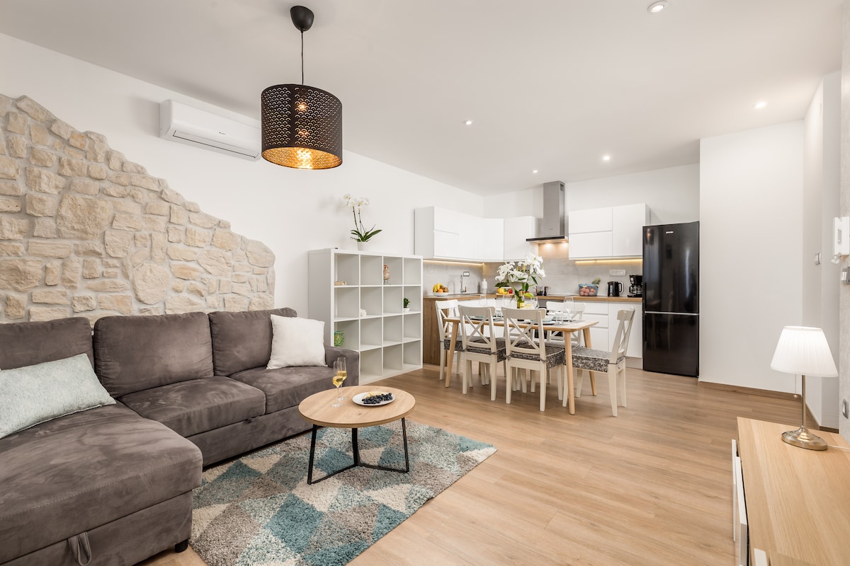 Welcome to our stylish rooftop loft with a big balcony and an amazing panoramic scenery. Wake up to 50 Shades of blue Adriatic sea. An image so perfectly crafted, it heals your soul. Watch windsurfers in the bay early in the morning, and enjoy a relaxing brunch in peace and quiet. See the beauty of storms from far away, find secret beaches nearby, and watch stunning sunsets from our comfy balcony lounge. Breathe in, slow down, and create memories you'll never forget.