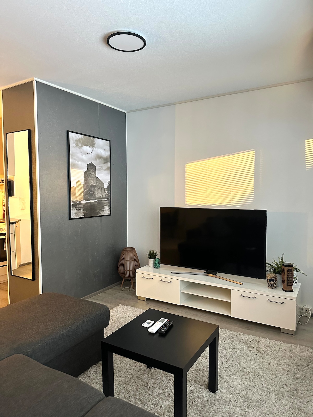 Tapiontupa,on rauhallinen ja tyylikäs rivitaloasunto 3,5 km Mikkelin keskustasta, Launialan kaupunginosassa. 2 km päässä sijaitsevat Prisma, Citymarket ja paljon muita palveluja. Täällä pääset nauttimaan myös rantaelämästä kaupungin uimarannalle ja uimaan Saimaassa (800 m asunnolta). Voit lämmittää saunan, kylpeä ja grillata omalla suojaisella terassilla. Majoitukseen sisältyvät liinavaatteet ja pyyhkeet. Autokatoksesta löytyy paikka autollesi. Tule ja viihdy!