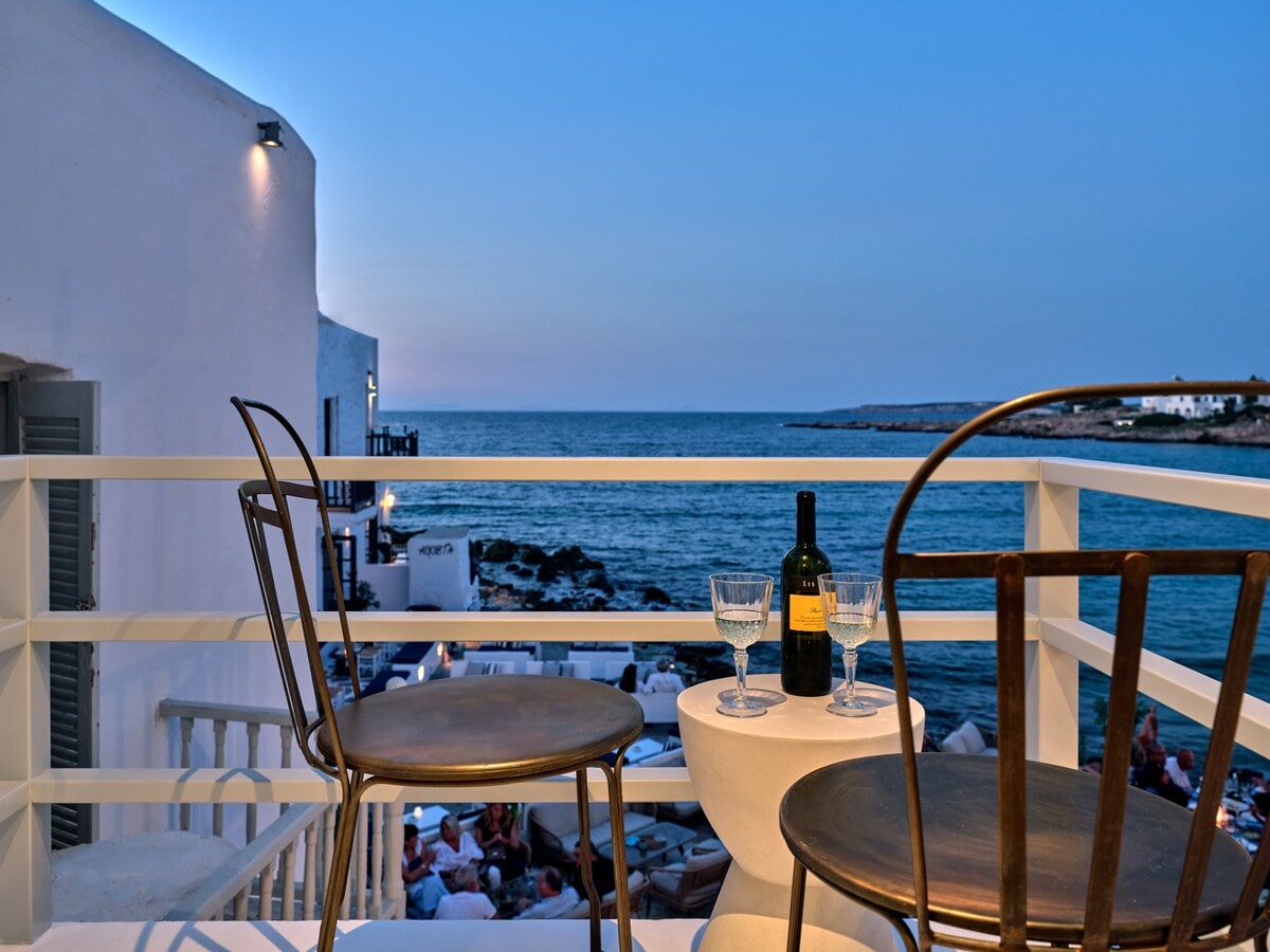 Open the sea-blue shutters and let in the cooling breeze, then whip up a snack at the urban concrete kitchen countertop at a breezy waterfront retreat. Step onto the spacious, leafy veranda for leisurely sunset drinks with unobstructed ocean views! The apartment is situated next to a sandy beach for a morning swim and a 2-minute walk from the center of Naousa and its main square. Shops, restaurants, bars, and clubs are within walking distance, yet the area is very quiet and calm!