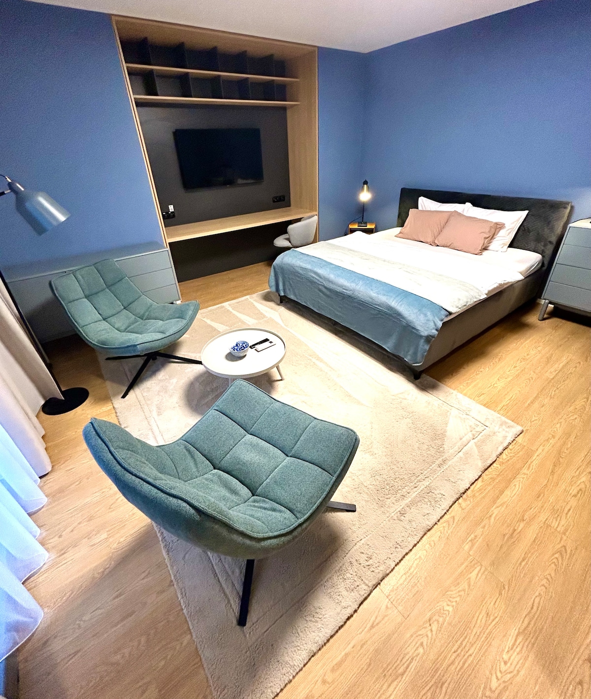 A luxurious modern apartment in the center of Brno. Quiet environment, private parking space in the building’s courtyard, fully equipped apartment. Also includes a built-in private sauna for 3. You’ll find everything you need to have a relaxing, undisturbed stay. Maximum capacity of 4 guests.