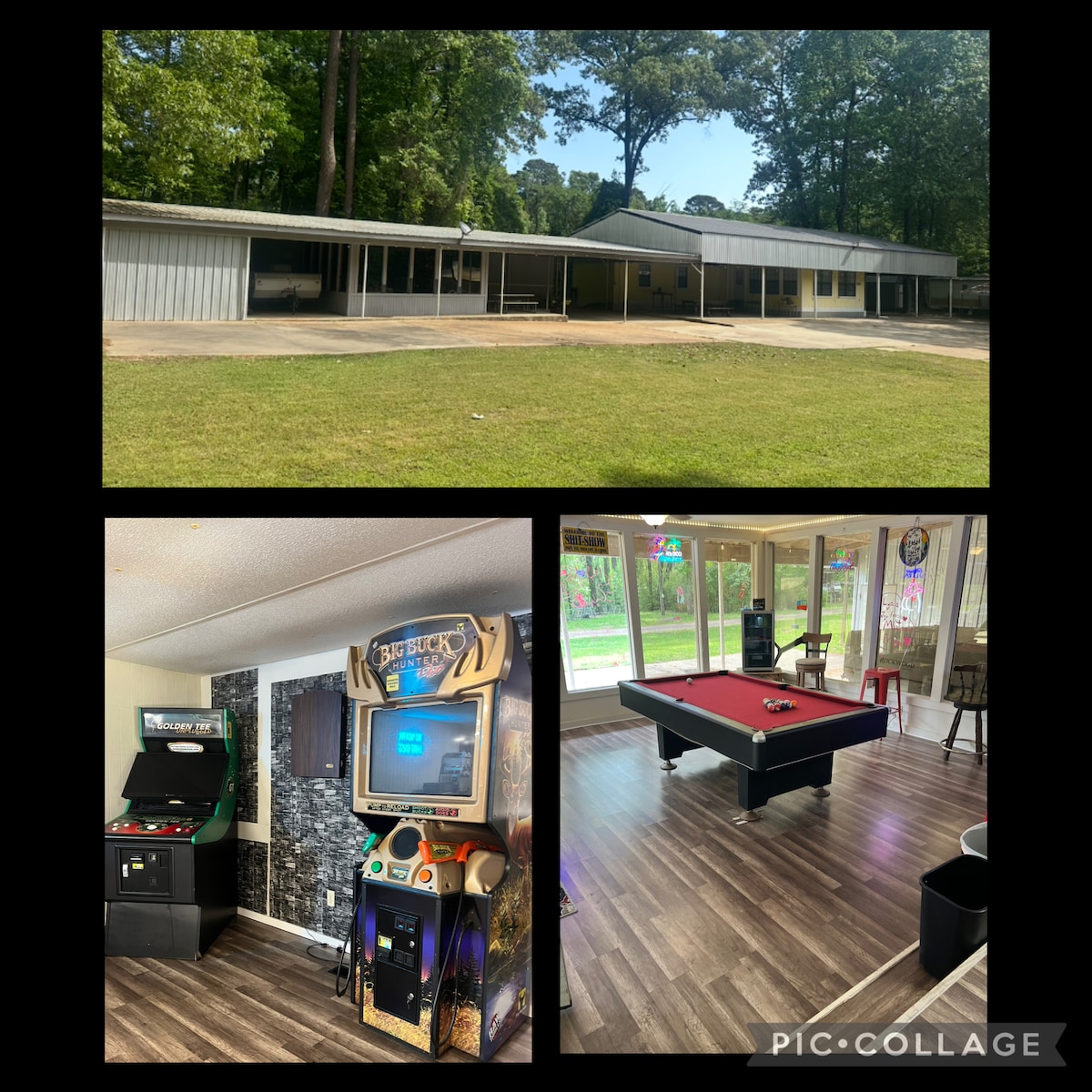Our Texas sized, pet friendly Barndo is a 3,800 sq. ft. Lake House, located on ~3 acres overlooking Toledo Bend Lake. Our spacious Barndo sleeps 16 in beds with additional space for air mattresses. We are on a bluff above the lake which offers stunning panoramic views of Toledo Bend Lake and beautiful sunsets. If you are coming to enjoy water activities, we are conveniently located between 3 boat ramps (~1 mile away). Shore fishing/swimming is available just 1 mile away at Holly Park Marina.