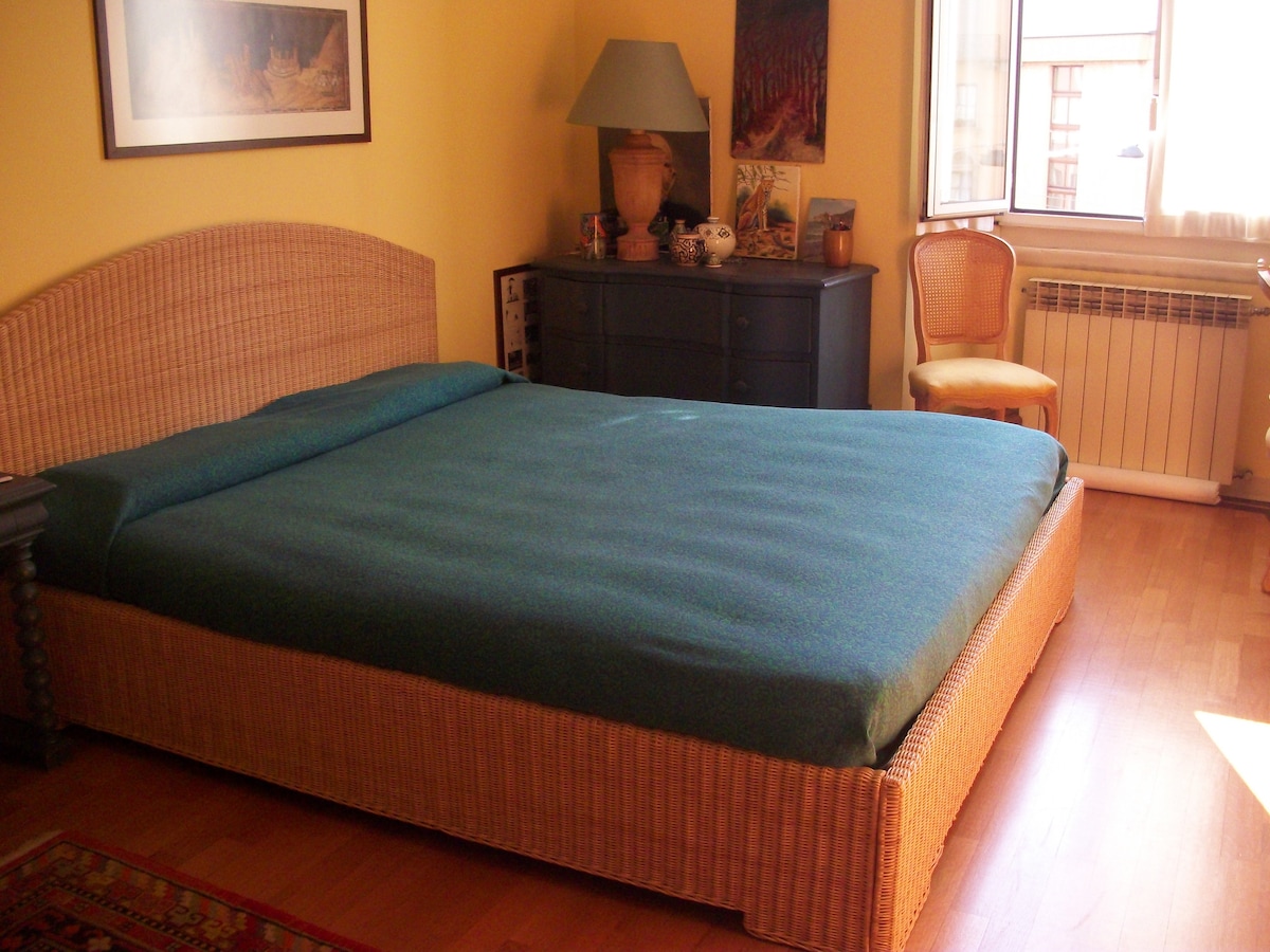 Camera matrimoniale molto grande e luminosa, con letto comodo extra-large, in appartamento dalle tinte autunnali e calde nella storica area dei Navigli. Di fronte all'Auditorium, a pochi minuti a piedi da Darsena, Università Bocconi, NABA e molto vicina a mezzi pubblici di trasporto e deliziosi caffè. Cucina e bagno condivisi con host. Aderiamo alla campagna "Love Sustainability". Check-in dopo mezzanotte non sono sempre possibili e vanno concordati (aggiunta di 50€). CIN IT015146C2WH3RB2LF.