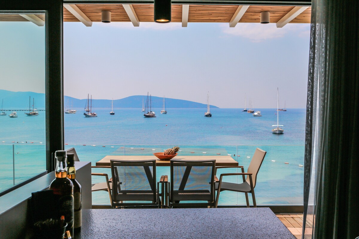 Our suites,which stand out with their comfortable and functional living spaces as well as their elegance, offer a holiday where luxury and comfort combine.Located in heartbeat of Bodrum and direct on Beach.Our suites are the perfect choice for those looking for entertainment and magnificient view.Inspired by the surfers bar concept, our Pub:Surfer Caravan Gastro Bar offers %10 discount for our guests. It is a great choice for enjoying your cocktails against the endless Aegean blue and swim
