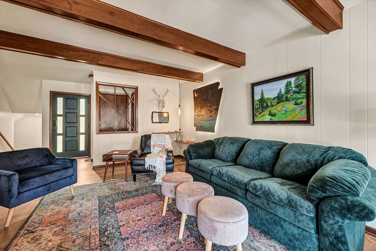 This fully stocked home welcomes you into the beautiful wooded views for ultimate peace and relaxation. There is a surprise waiting for you in every corner, from the modern yet rustic décor to the amazing deck which nestles beautifully into the trees just like a tree house. If you're feeling adventurous, a private yet steep trail will lead you to your own private dock where you can enjoy amazing views of a calm and quiet lake which you will almost always have to yourself.
