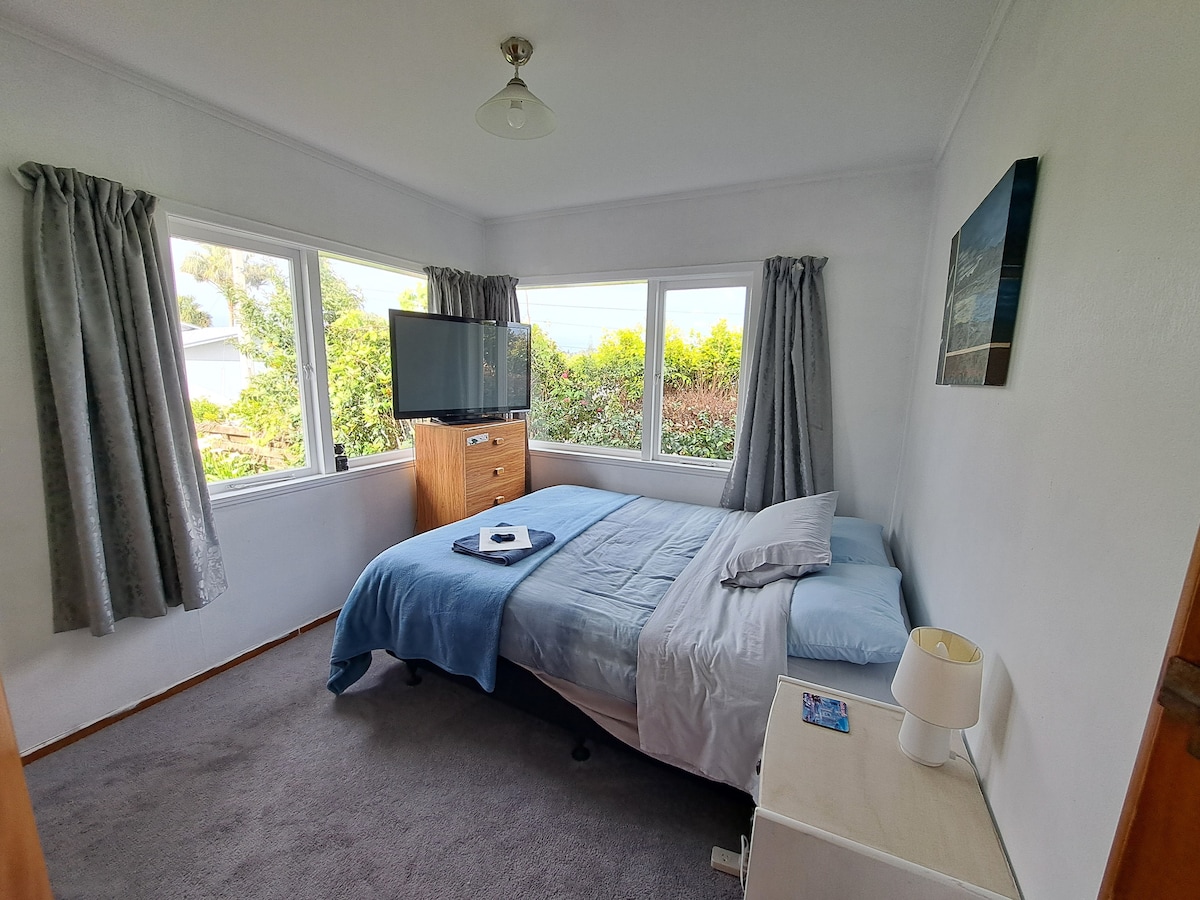 NEW ** Mini Kitchen, Small fridge,Hot plate,Microwave,Tea and Nespresso coffee. Comfortable quiet private guest suite which is part of our house but with own private entrance - in the heart of the North Shore. One bedroom with extra length Queen size bed and inter leading lounge. Quality furnished with couch, desk and flat screen TV. Private en suite bathroom with double hand basins and large modern tiled shower. Free WiFi Easy walking distance to Castor Bay beach. Off street parking available.