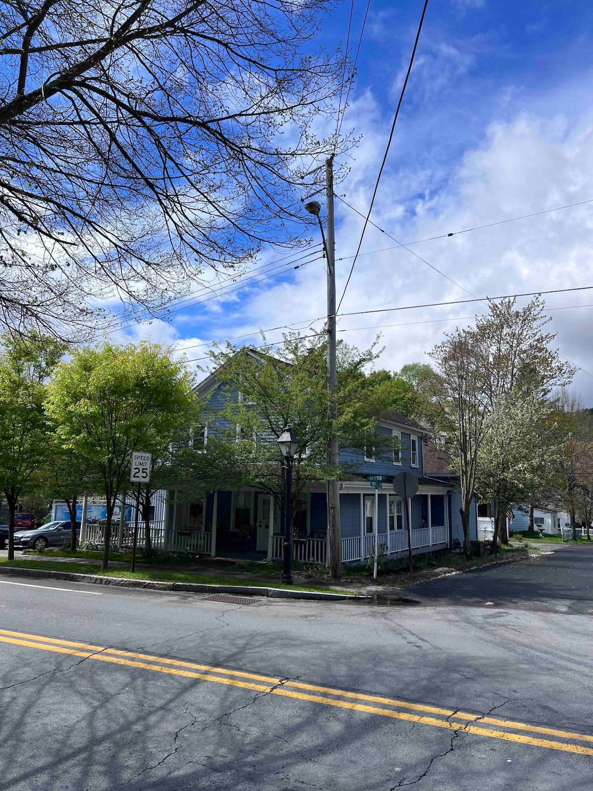 The ideal getaway for anyone seeking privacy in a beautiful, nature-filled setting. The steep gravel driveway leads you away from the street and into the woods to the Bee Hollow Cabin, set on over 6 acres of land. Optimal for a weekend of relaxation, hang out on the wrap-around deck overlooking the babbling brook, or cozy up by the fireplace.