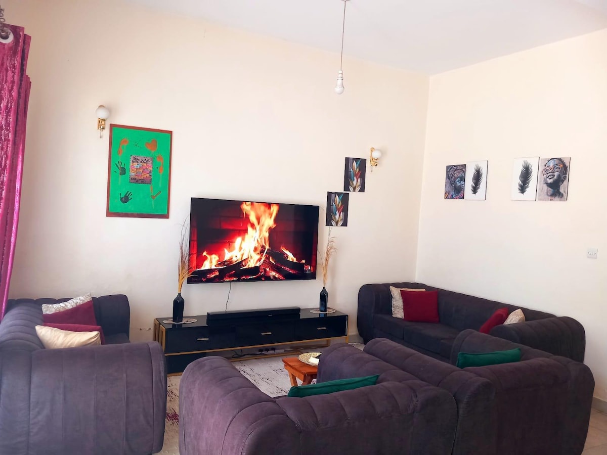 Kick back and relax in this calm, stylish space with a garden Located In Milimani Kisumu on Near Vittoria suites, idéal for Family, parties and leisure ,work and meetings. In a serene gated place next to StANNA GUEST HOUSE, with 24/7 Security Has an external garden that can host an afternoon gathering or barbecue Spacious living room and Dining that can accommodate many. Additional guests beyond 6 (six ) is charged per head.