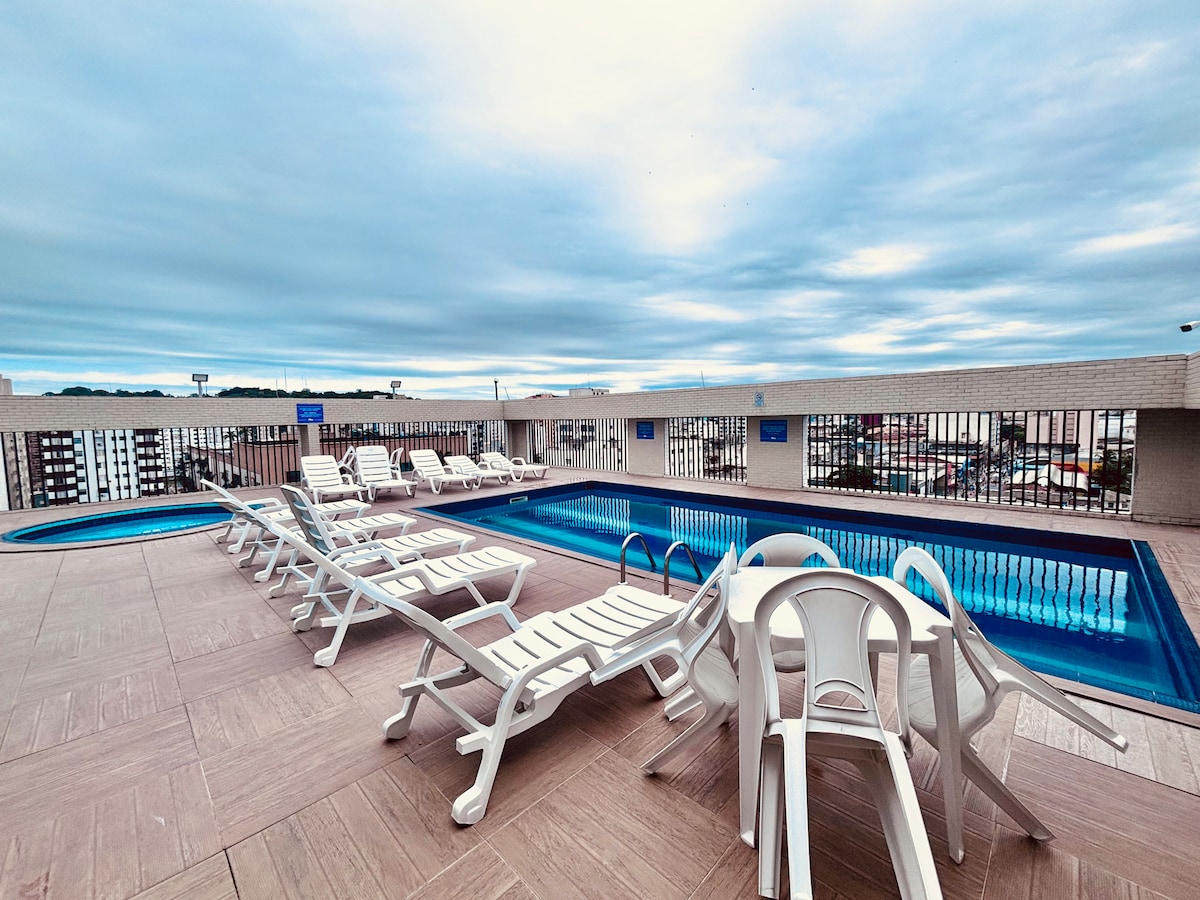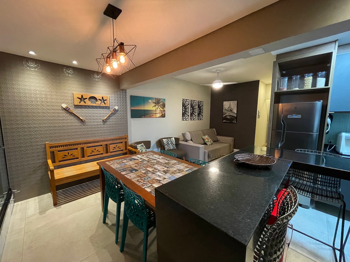 Flat recently renovated, 550mts from the beach, has daily maid service, swimming pool, 1 parking with valet service, WIFI Fiber 200MB internet and HD channels. Space for 4 people, with a double bed, a sofa bed and a mattress. Microwave, electric oven, refrigerator, cooktop, SmartTV, coffee maker, rice cooker, basic utensils for 4 people and split air conditioning. Complete trousseau included. DON'T accept PETS.