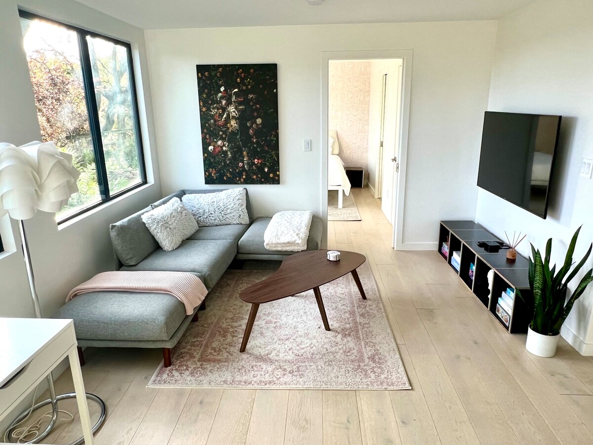 A lovely 1-bedroom in-law apartment just 10 mins from San Francisco in Mill Valley. Minutes to the beach, hiking trails, road cycling, mountain biking, & more. Admire gorgeous views during day while binge-watching free HBO, Netflix, and Hulu at night. Free access to washer/dryer.